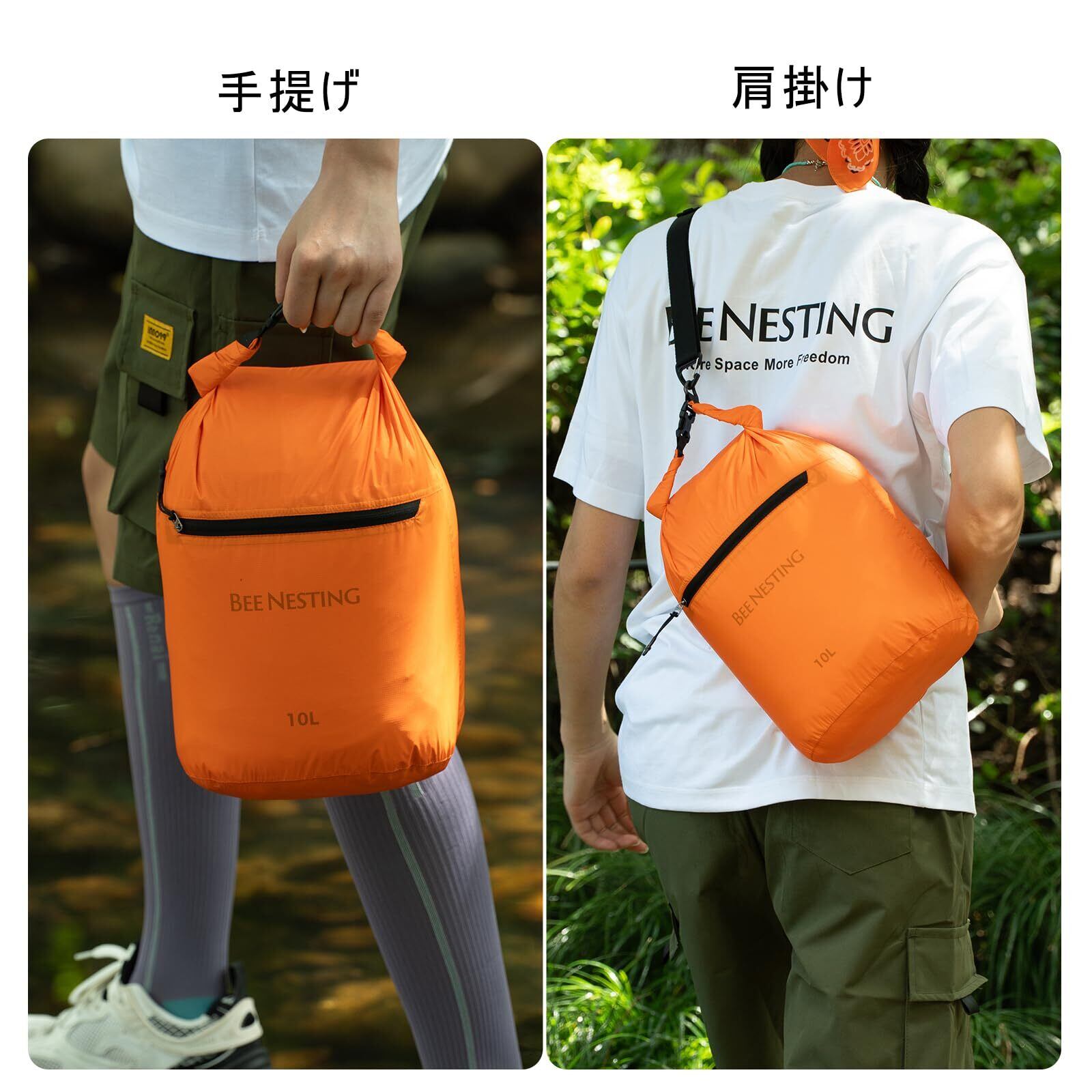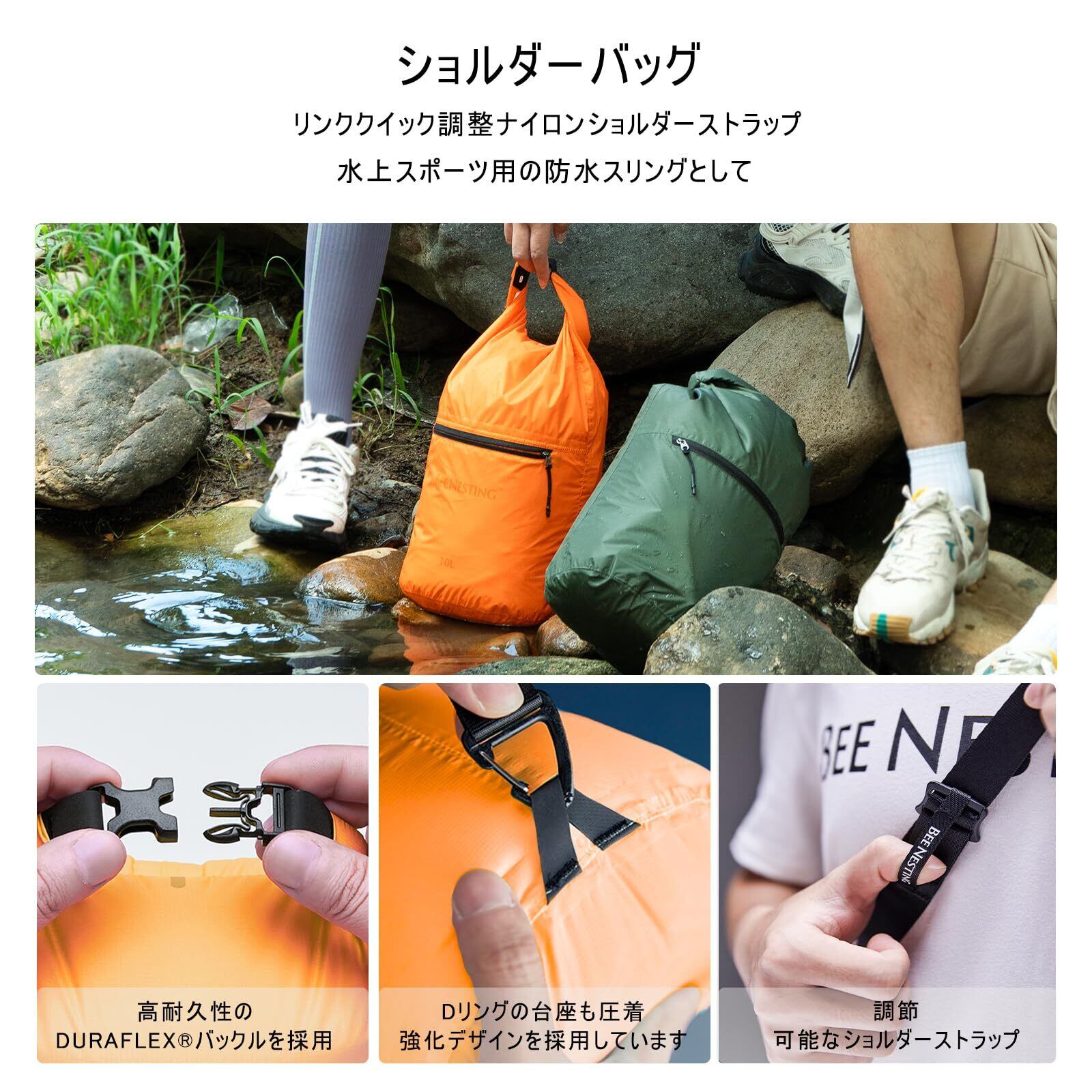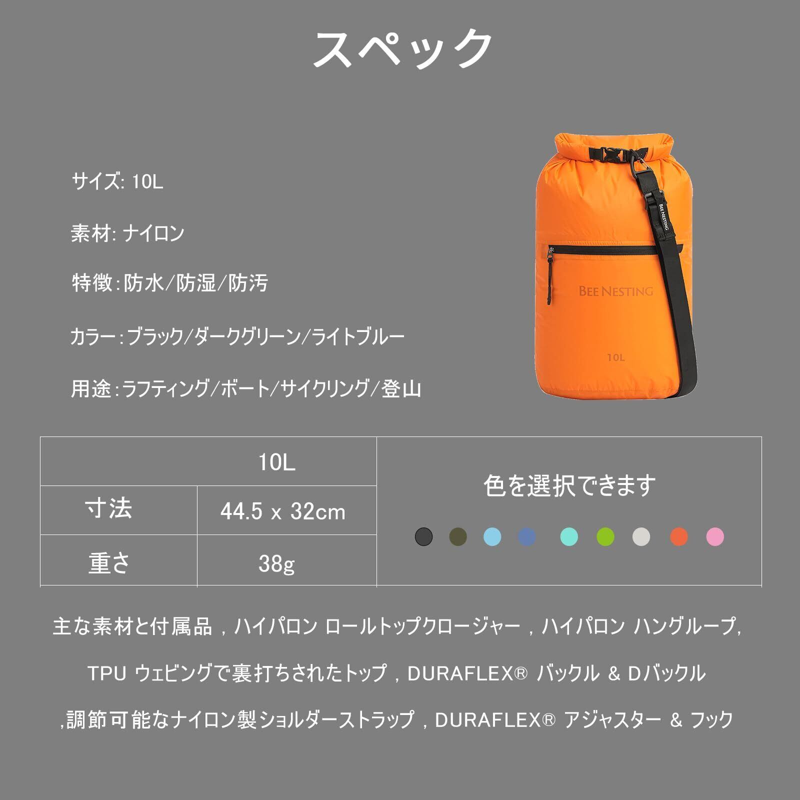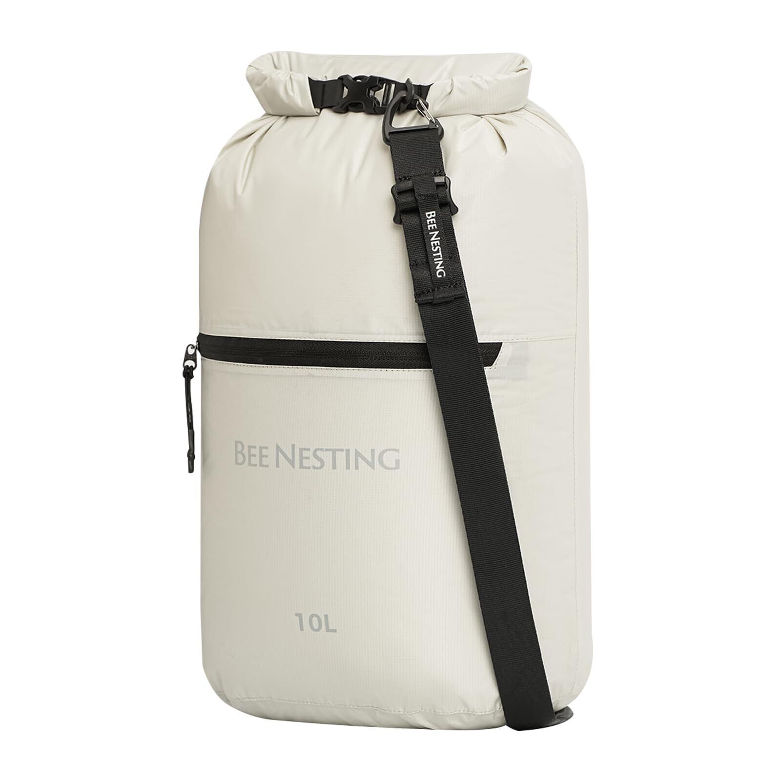 Bee Nesting 防水バッグ ドライバッグ 10L 超軽量 スタッフバッグ 2way 外側ポケット付き ジム 水泳 旅行 温泉 登山 アウトドア (グレー, 10L)