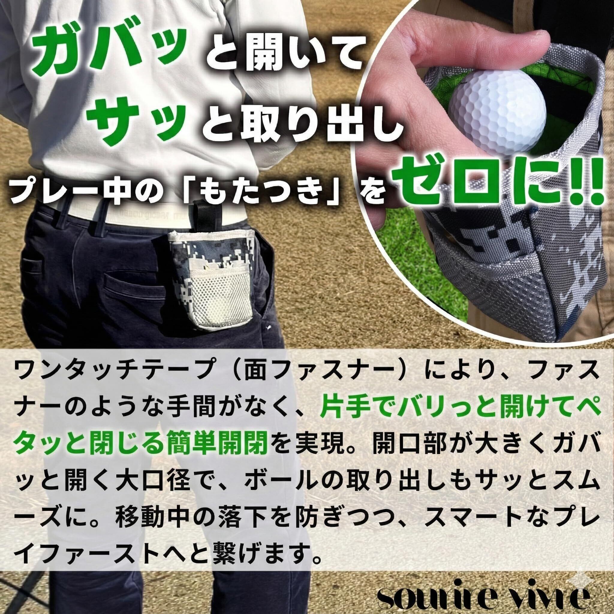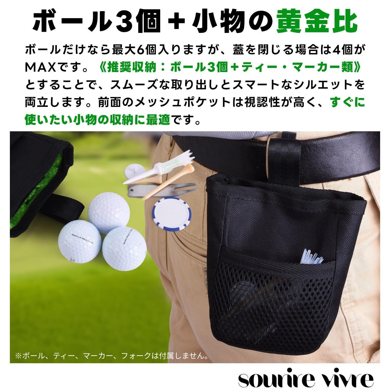 ゴルフボールケース ガバッと開いて即取出し ワンタッチ開閉 2WAY装着 ベルト通し&フック 3個収納推奨 (最大4個) ゴルフ ボールポーチ 小物入れ 面ファスナー (ブラック)