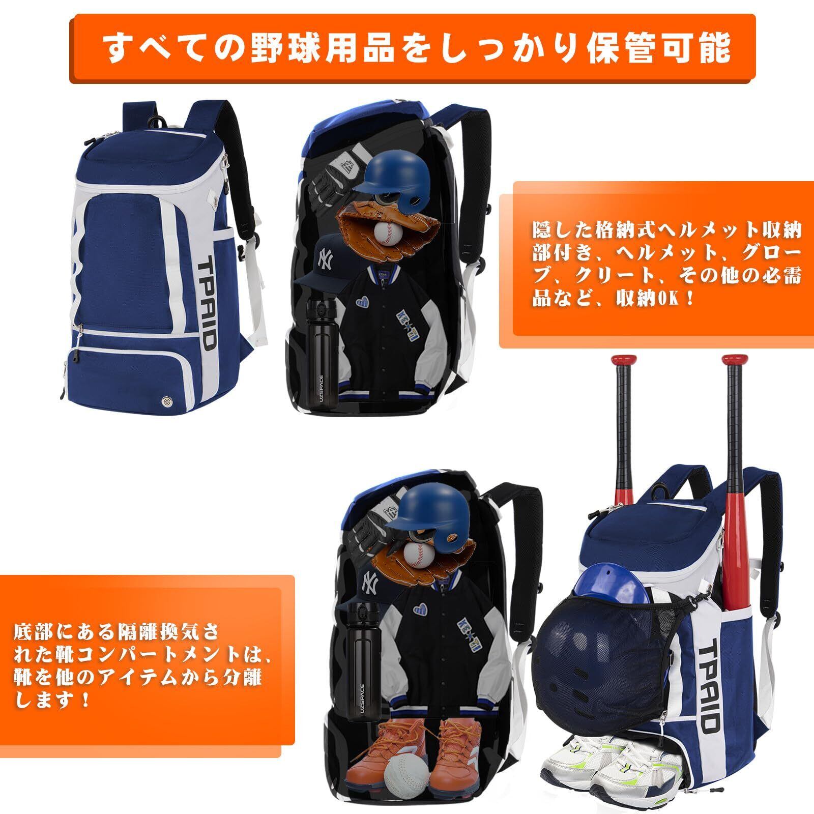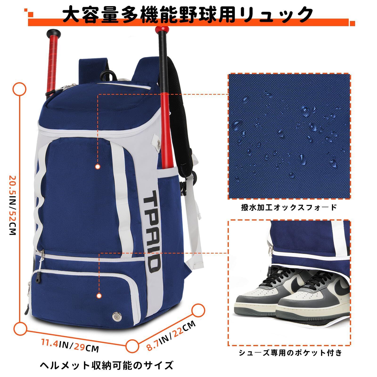 【素材】撥水加工オックスフォード【サイズ】横29cm×縦52cm×幅22cm【重量】1kg【容量】35L【10ポッケト】外側ポケット:トップファスナーポケット*1、シューズ専用コンパートメント*1、隠した格納式ヘルメット収納部*1、サイドポケット*2(バットは2本収納可能)/ 内側ポケット:内部大容量メーンポケット*1、内側サイドポケット*1、小物入れ*2、15.6インチPC専用コンパートメント*1【高品質】野球道具の保管と運搬用のユースベースボールバックパック。野球リュックは頑丈なナイロン素材でできており、野球用品やその他の必需品を摩耗から保護します。高品質の素材と補強されたステッチが耐引裂性と耐久性を提供します。