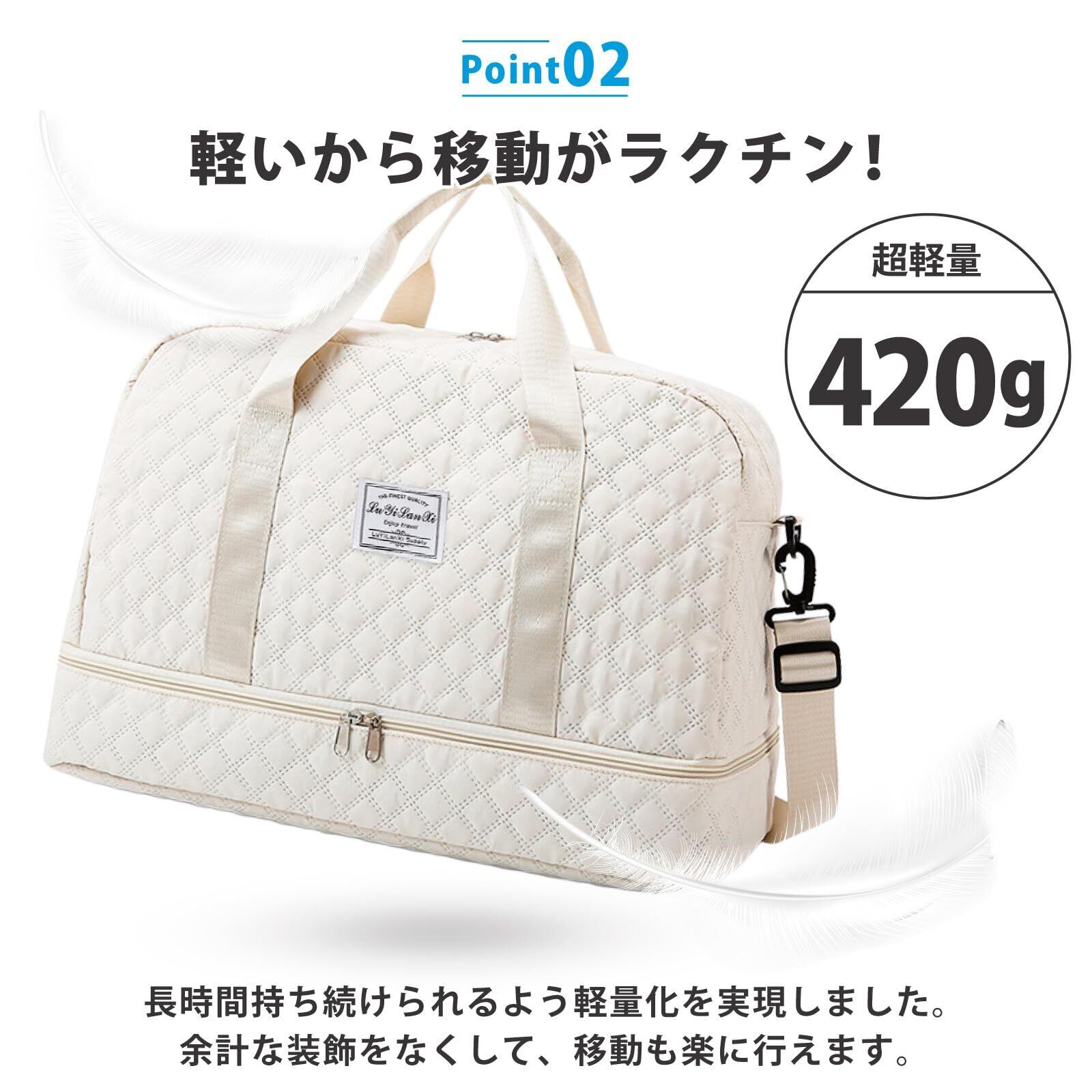 【特価商品】ボストンバッグ レディース 旅行バッグ 一泊二日 大容量 機内持ち込み 折りたたみ 靴入れ 旅行カバン (ホワイト, メインバッグ)