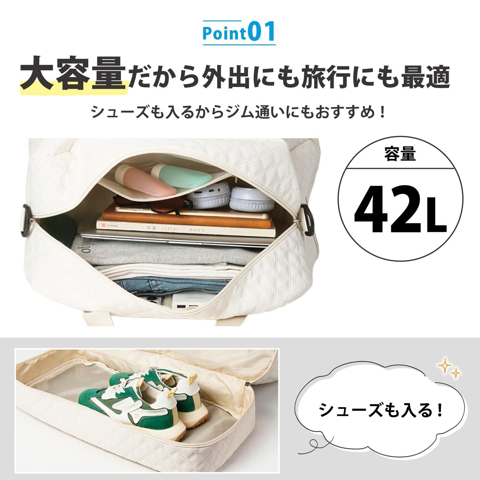 ボストンバッグ レディース 旅行バッグ 一泊二日 大容量 機内持ち込み 折りたたみ 靴入れ 旅行カバン (ホワイト, メインバッグ)