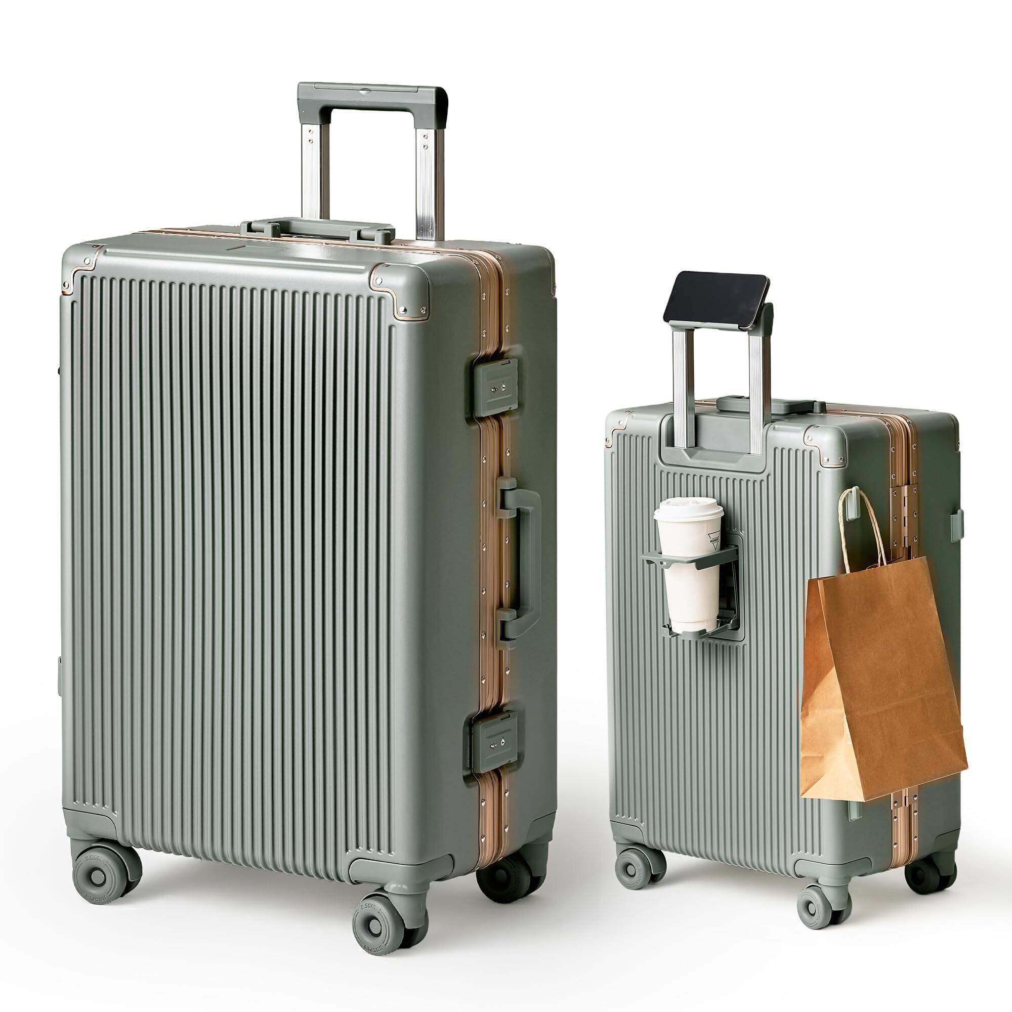 【2022最新】進化形! スーツケース 大型 ワンタッチ式カップホルダー キャリーケース 超軽量アルミフレーム 静音ダブルキャスター 大容量スーツケース 機内持ち込み対応 TSAロック 疲れない設計 ビジネス 旅行 入学祝い おしゃれ Lサイズ スレートグリーン 80L 7-8泊