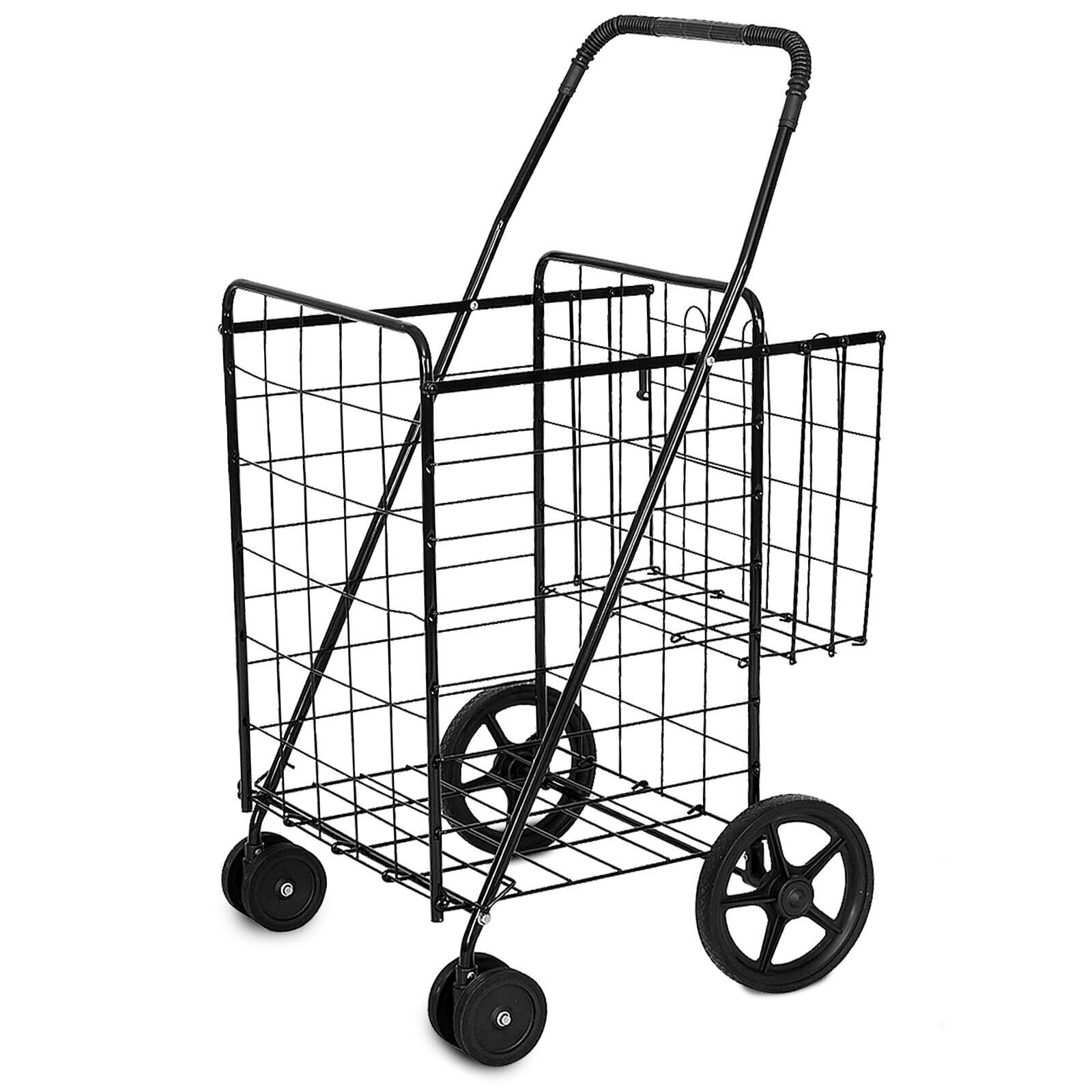 Goplus ショッピングキャリー お買い物カート 折りたたみ ショッピングカート キャスター付き 大容量 軽量 お出かけカート 収納便利 多用途 買い物 ピックニック アウトドア ショッピング キャリー カート 高齢者向け (ブラック/L)