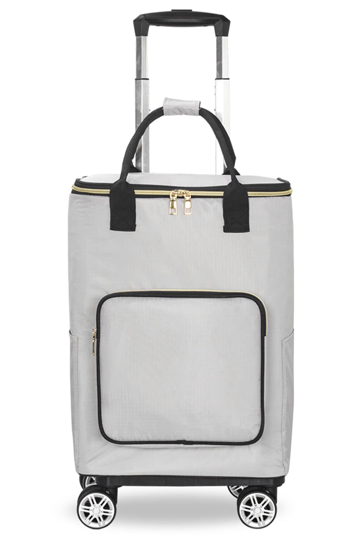 BQKOZFIN 4輪 ショッピングカート ショッピングキャリー 買い物カート 横押し可能 機内持ち込み 軽量 保温保冷 キャリーバッグ 2WAY (Lサイズ グレー)