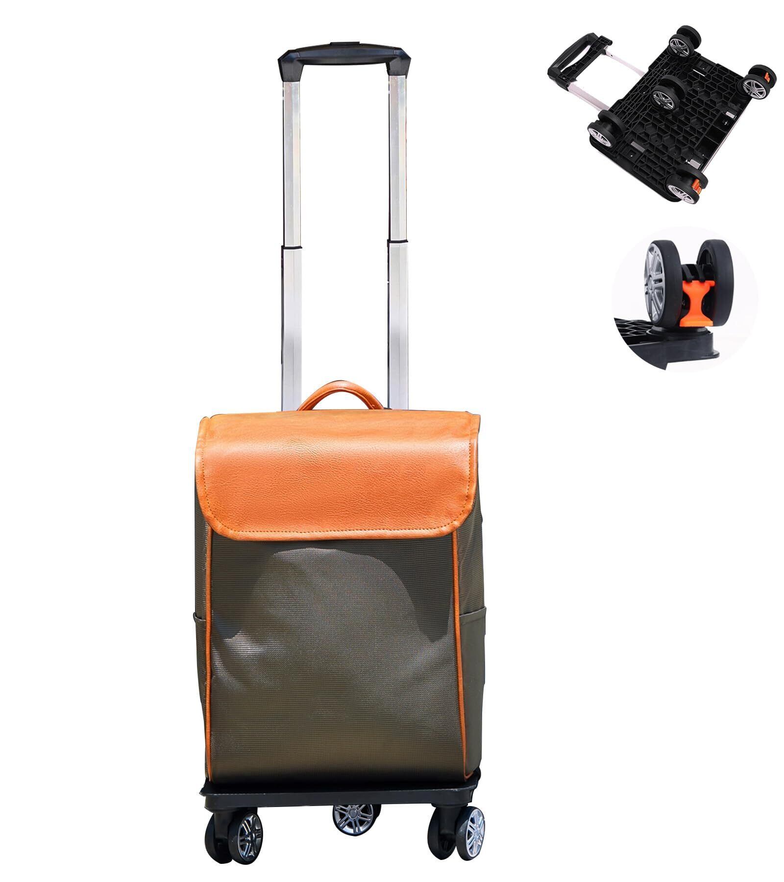 【新春セール】ショッピングカート ショッピングキャリー 買い物 小型台車 軽量2kg・大容量25L!軽量 アルミ製 コンパクト折りたたみ 脱着可能なバッグ 5輪安定設計 ブレーキ付き 三段階調節ハンドル 耐荷重35kg 横に押す 縦に引く (カーキ色)