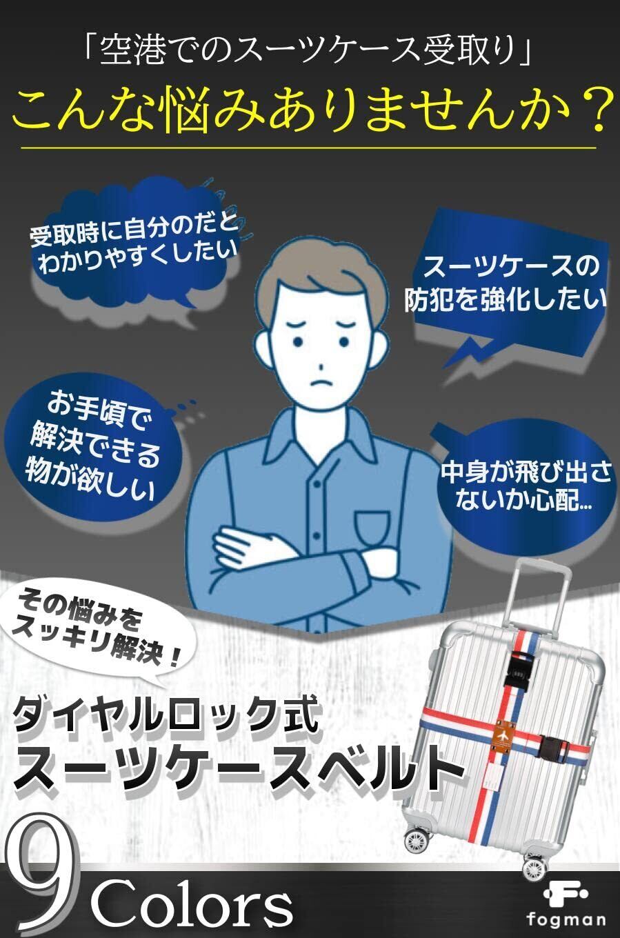 fogman スーツケースベルト 鍵付き ロック 十字 3桁ダイヤル式 収納袋付き 2本セット (レインボー)