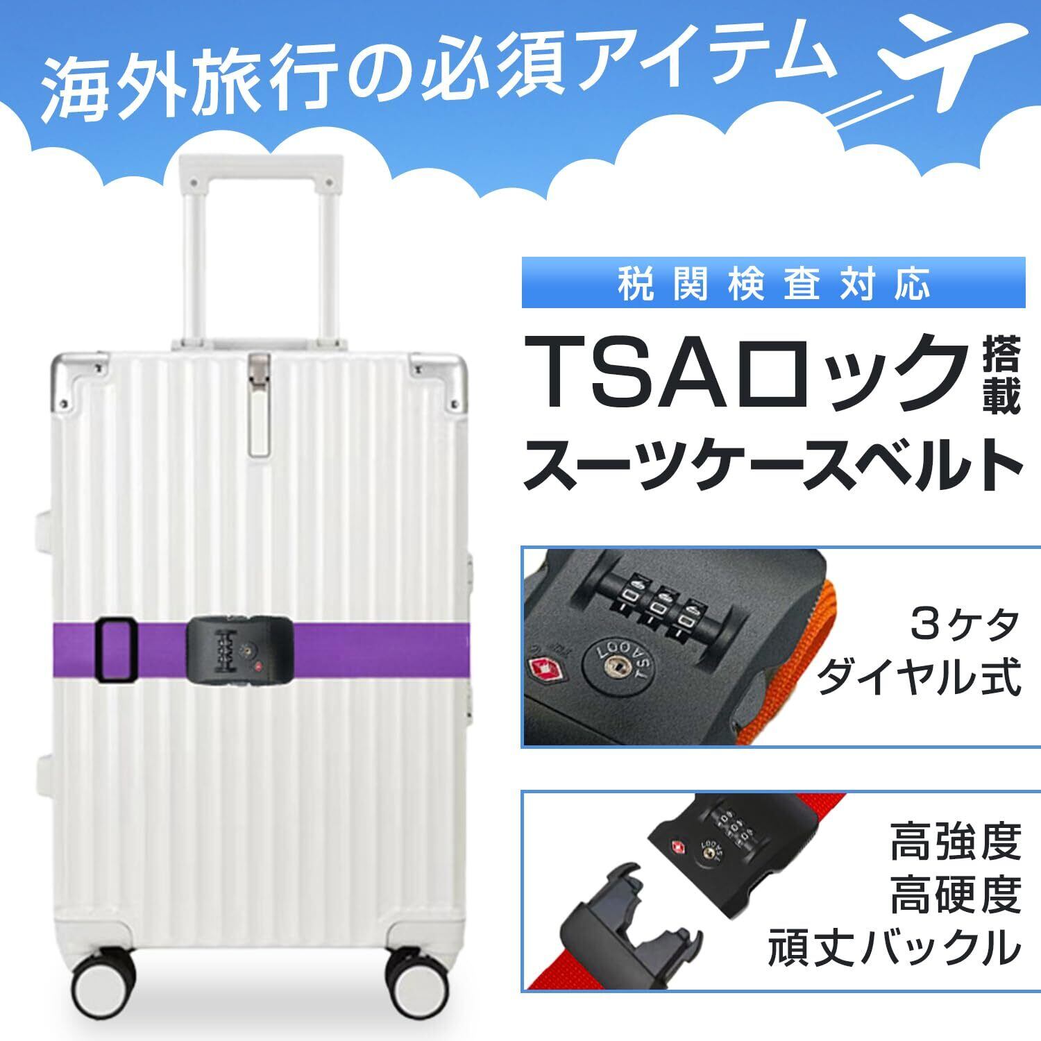 【新春セール】スーツケースベルト TSAロック ダイヤル式 I字型 日本語説明書 長さ調整可能 軽量タイプ キャリーケース目印 旅行 出張 荷崩れ防止 (オレンジ)
