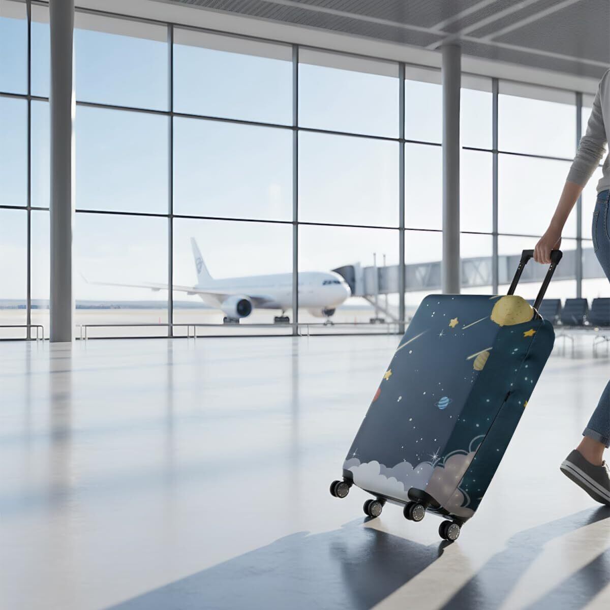 高密度で丈夫なポリエステル素材を使用。空港のコンベアやトラックの積み下ろしによる衝撃や摩擦から、あなたのスーツケースを優しく包み込みます。