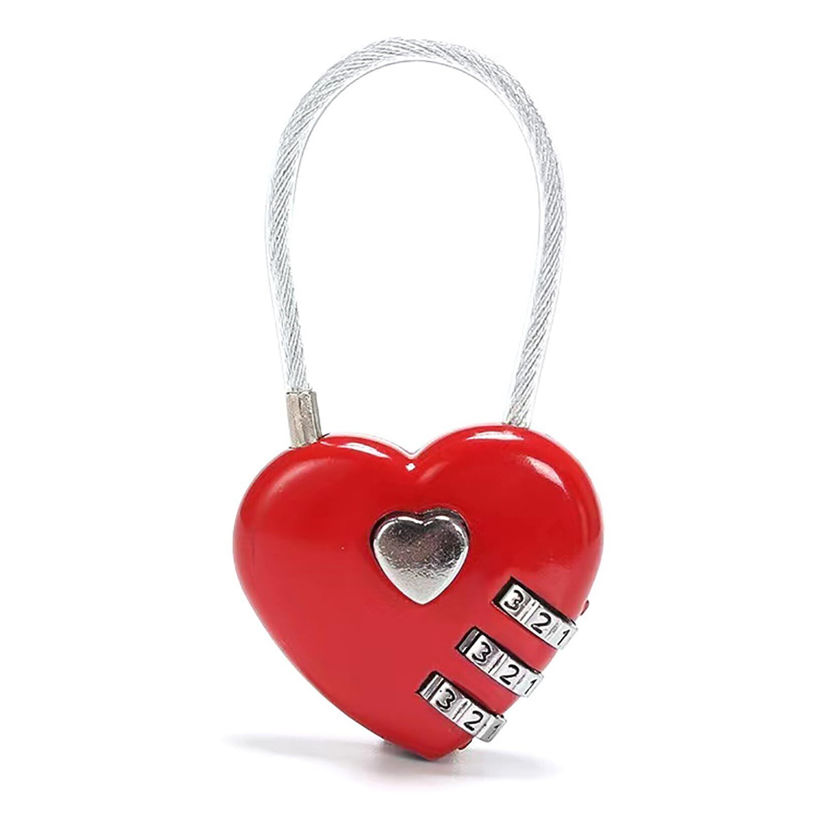 Orirya ダイヤル式南京錠 小型 軽量 かわいいハート型 ワイヤーロック 3桁 暗証番号式 パスワードロック 旅行用 スーツケース ジムロッカー バッグ キャリーケース 学校用 鍵不要 レッド1個