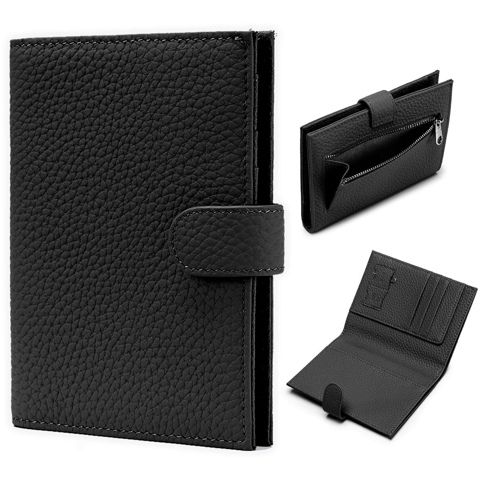 【特価セール】パスポートケース 本革 二つ折り 財布 薄型 スキミング防止 パスポートカバー パスポート カードケース 多機能収納ポケット付き 国内海外旅行用品 トラベルウォレッド パスポートバッグ ポーチ 海外出張 海外旅行 (ブラック)