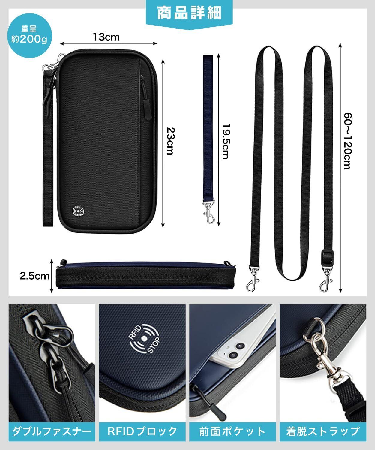 パスポートケース 首下げ 肩掛け 手持ち 3way スキミング防止 大容量 セキュリティポーチ 男女兼用 旅行用財布 多機能 バッグ チケットホルダー トラベル 留学 貴重品入れ (グレー)