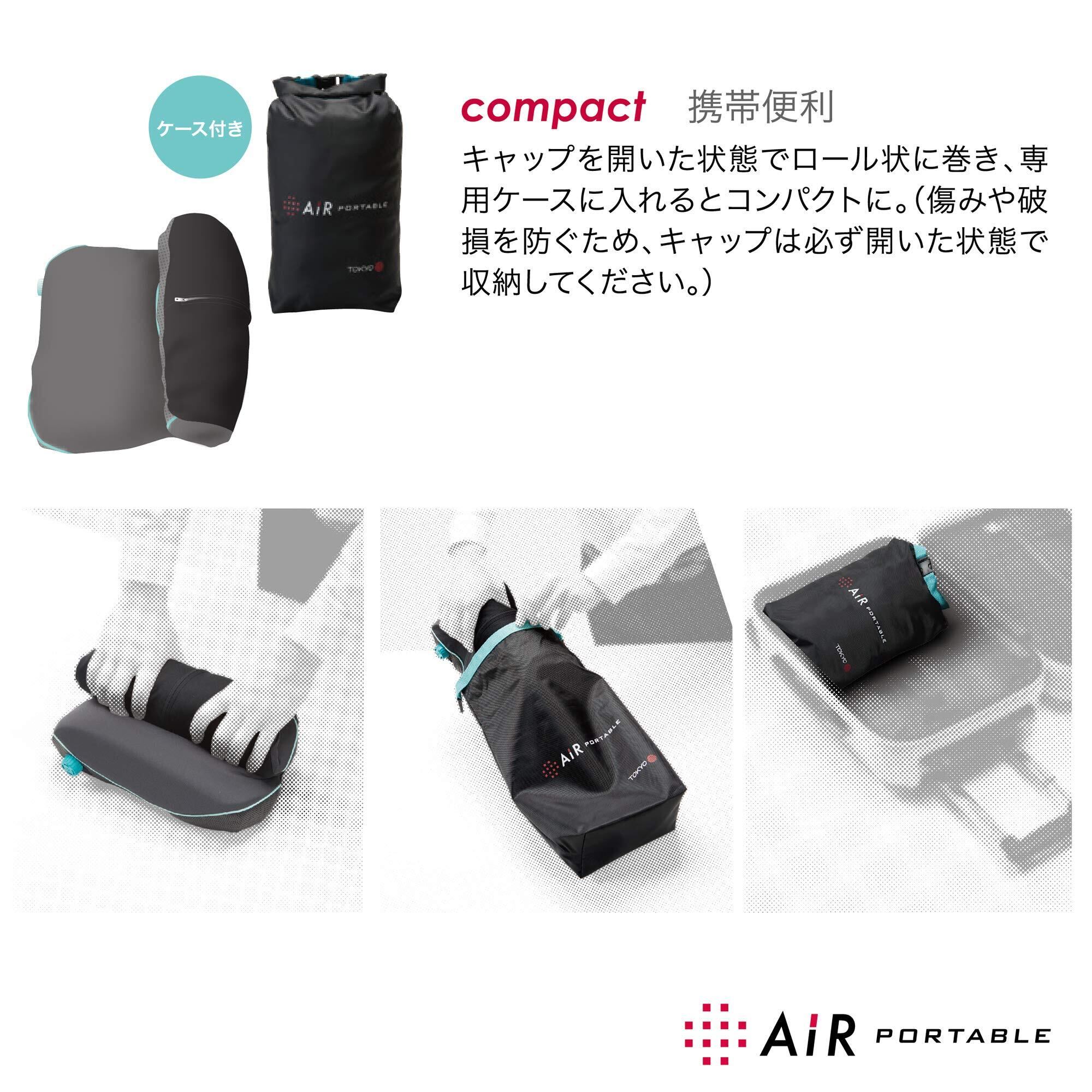 東京西川[エアー]のポータブルシリーズ。 快眠設計のユーザーアジャスタブル携帯ピロー。 キャップを開け、内部に充分空気をとり込んだ状態でセット。空気を抜きながらボリューム調整できる携帯用ピローシリーズ。 コンパクト設計で頭部にジャストフィット。