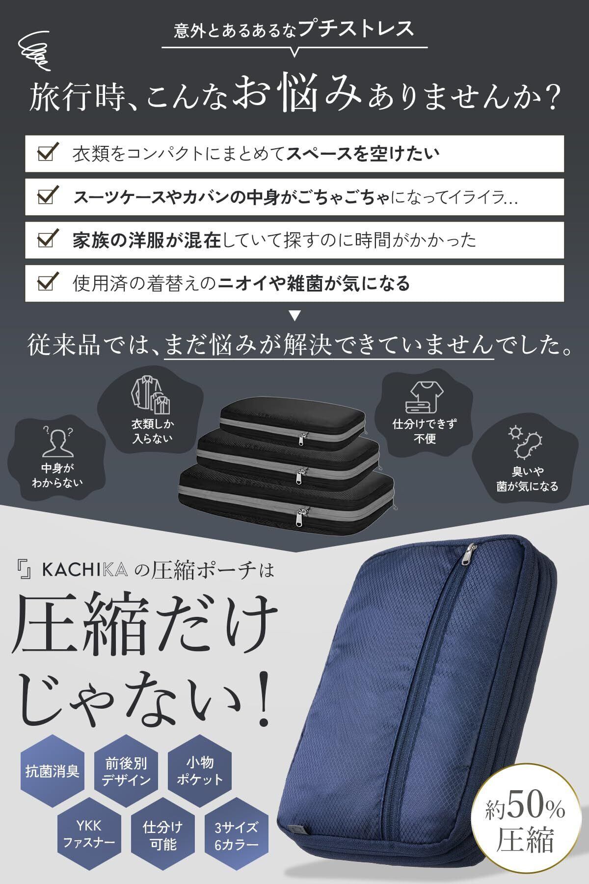【圧縮だけじゃない、整理まで考えたトラベルポーチ】 KACHIKAの圧縮ポーチは、容量を減らすだけの従来型圧縮袋とは異なり、旅行や出張で起こりがちな「探しにくい・混ざる・取り出しにくい」といったストレスを、構造そのものから見直して解決するトラベルポーチです。