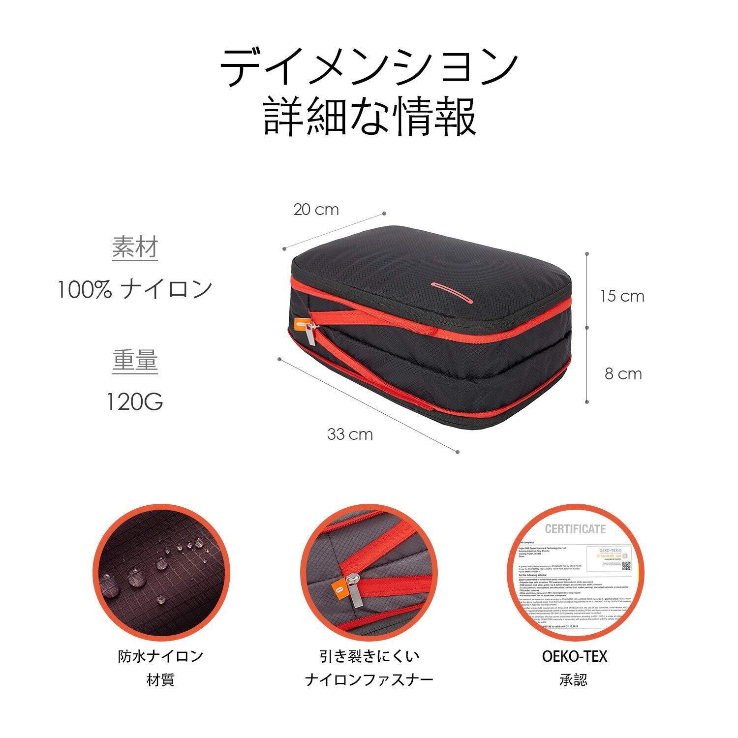 【圧縮機能】外部圧縮ジッパーで梱包後に内容物を圧縮する機能を提供し、9Lの荷物を5Lに圧縮でき、約50%のスペースを節約し(33cm H x 20cm W x 15cm-6cm Dコンムプレス)、荷物がかさばってしまうストレスから解放されます。頻繁に出張する方におすすめします