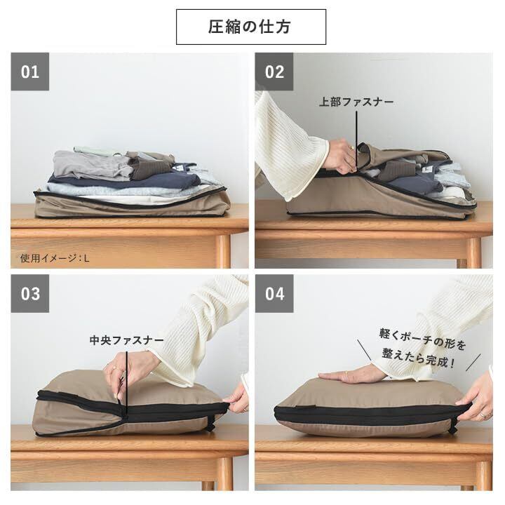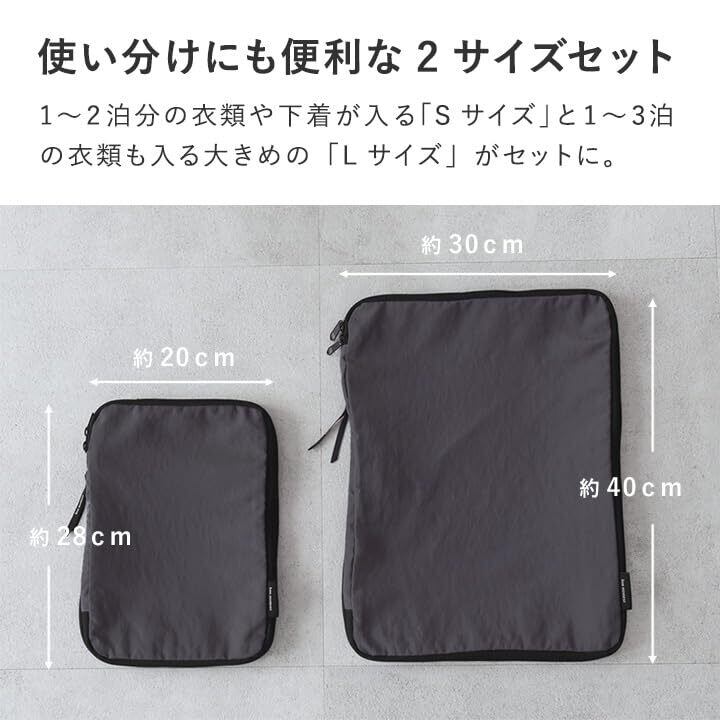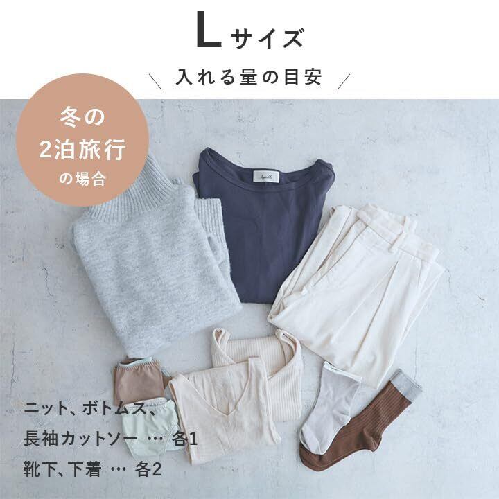 【使い分けにも便利な2サイズセット】1~2泊分の衣類や下着を入れるのにぴったりな「Sサイズ」と1~3泊分の衣類も入る大きめの「Lサイズ」がセットに。旅の日数に合わせて使い分けたり、家族の荷物を分けて収納したりするのも◎。