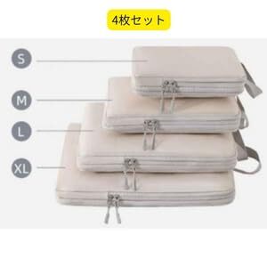 【数量限定】トラベルポーチ 4点セット 旅行用圧縮袋 衣類袋 収納バッグ 旅行用ポーチ 便利グッズ パッキングケース 仕分けバッグ ベージュ