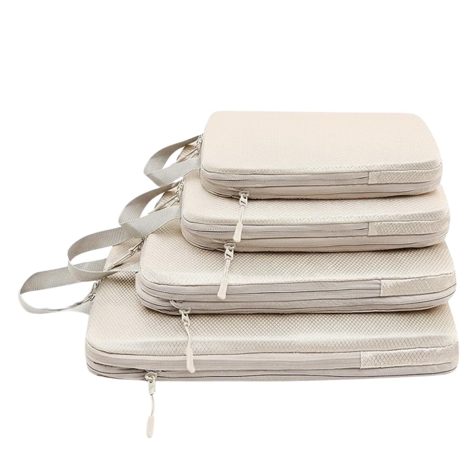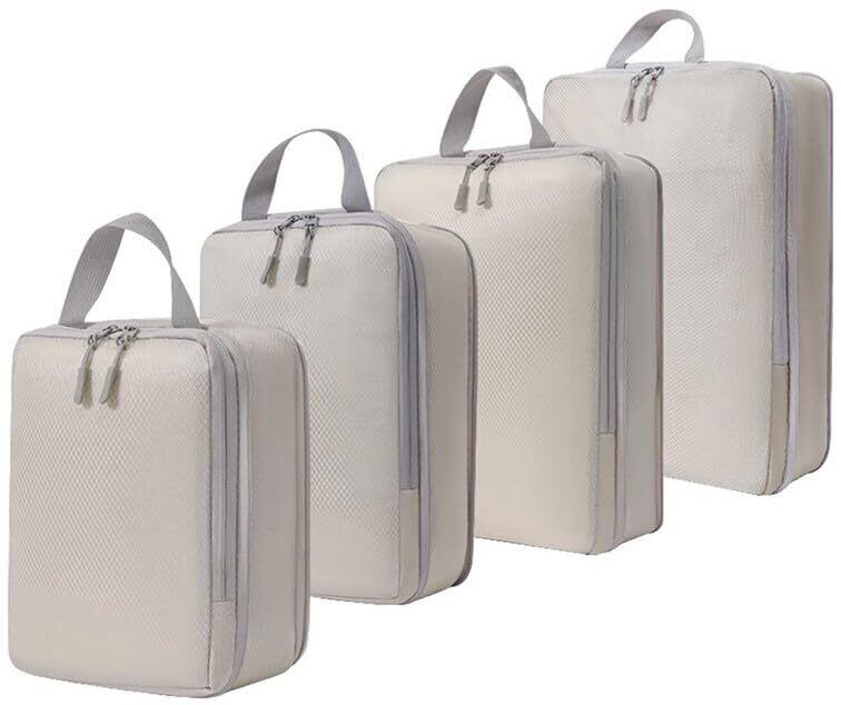 トラベルポーチ 4点セット 旅行用圧縮袋 衣類袋 収納バッグ 旅行用ポーチ 便利グッズ パッキングケース 仕分けバッグ ベージュ