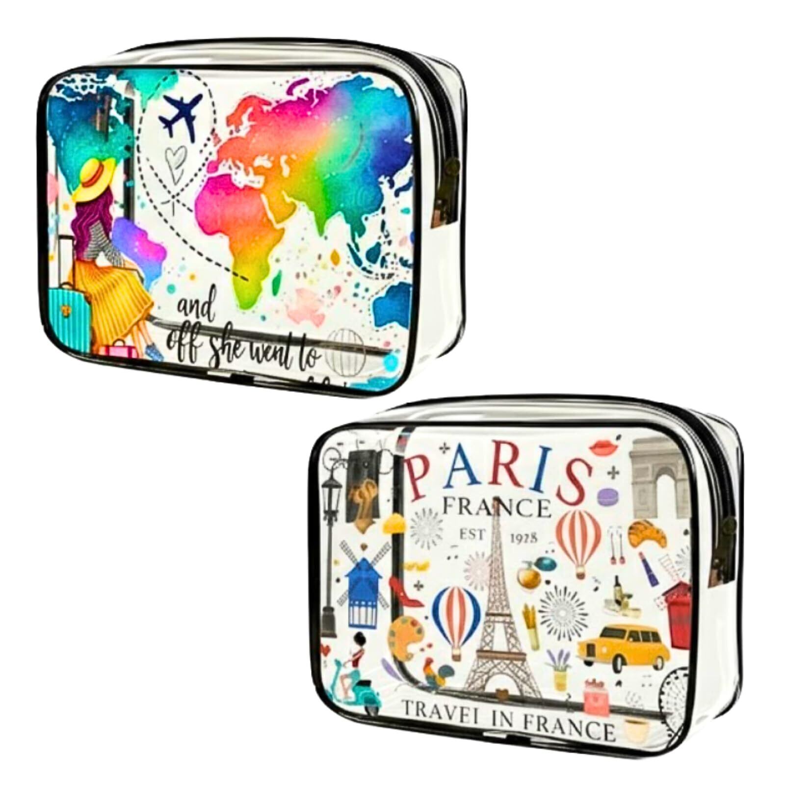 【数量限定】透明 クリア ビニール ポーチ トラベル 旅行 化粧 小物 トイレタリー TSA準拠規格 ((トラベルワールド&エッフェル塔))