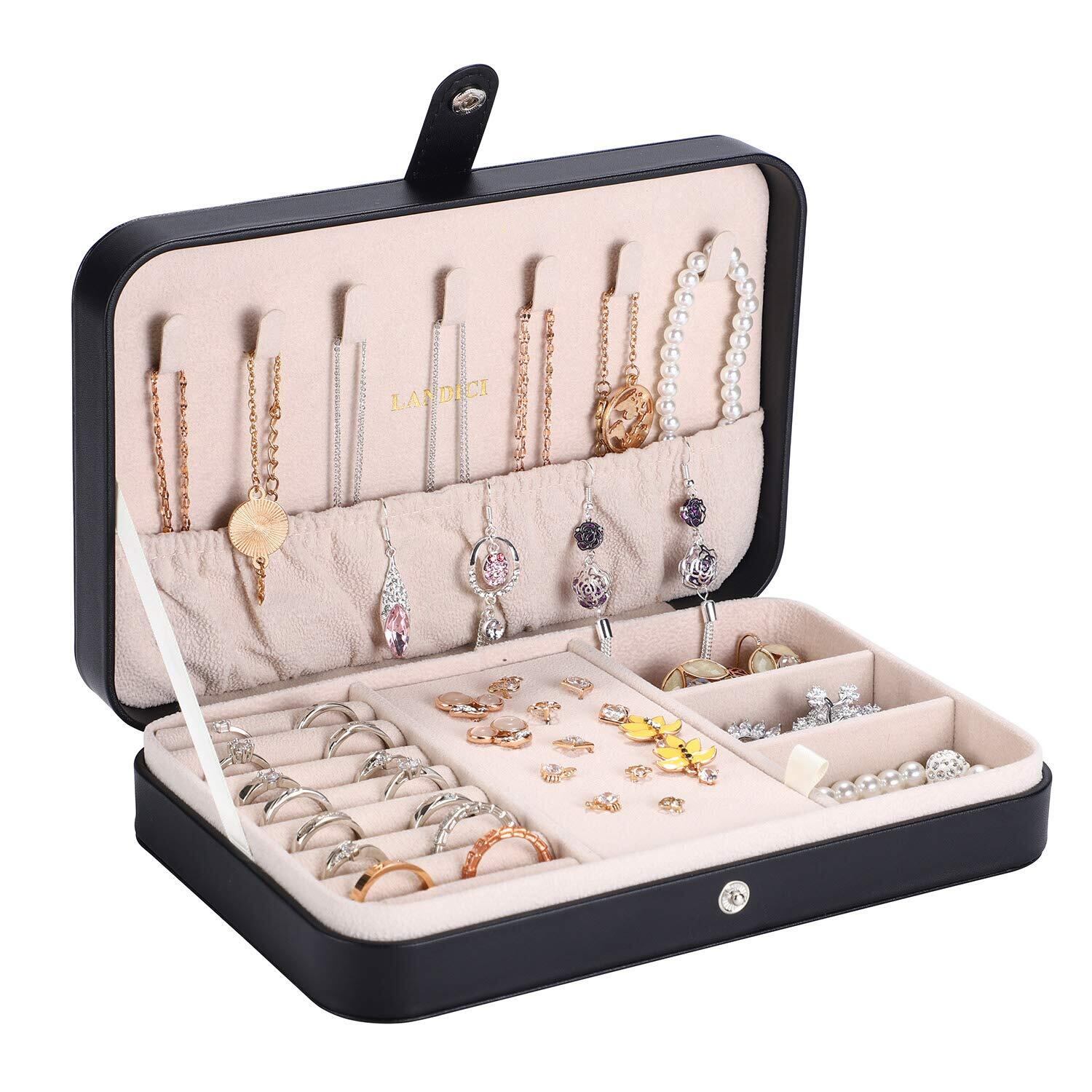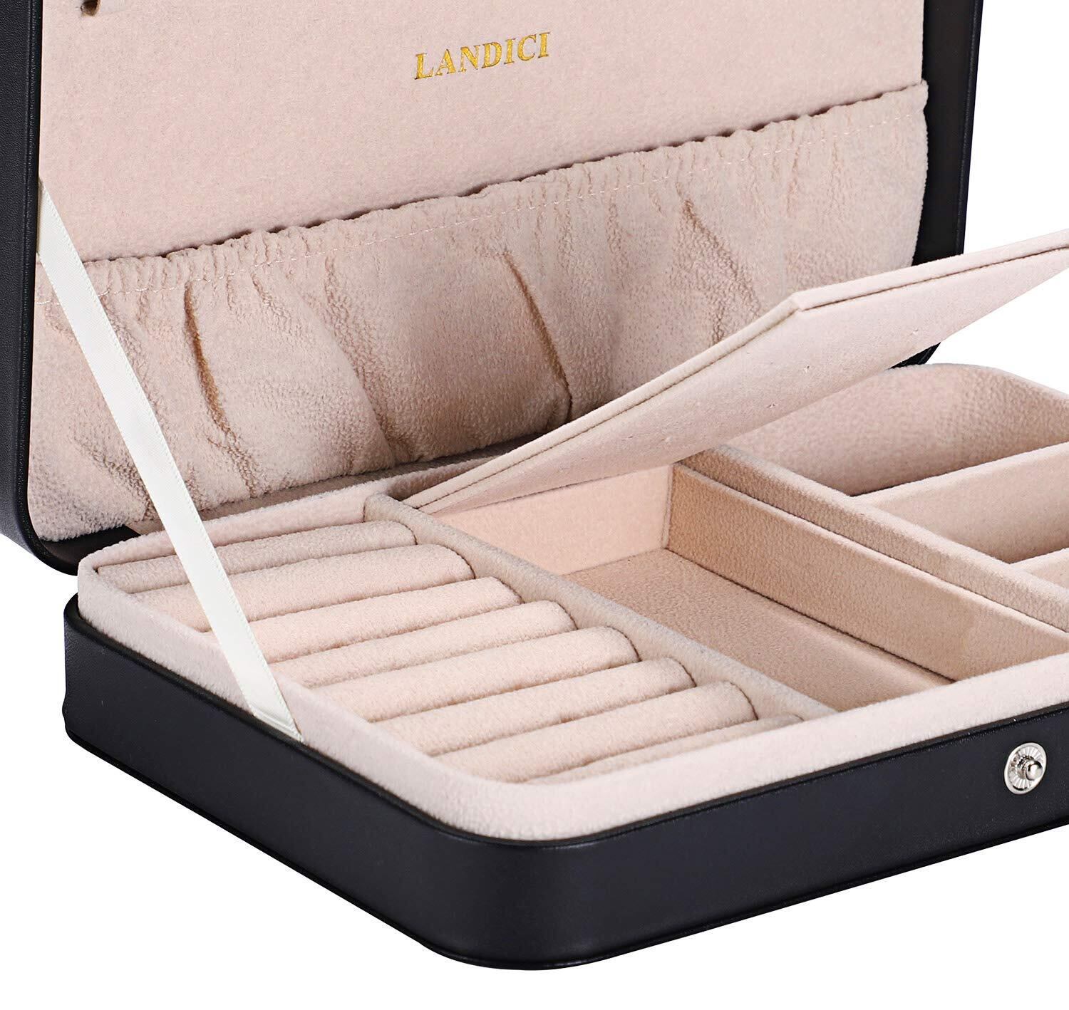 LANDICI ジュエリーボックス PUレザージュエリーケース ジュエリーボックス 指輪置きジュエリー収納ケース 携帯用 持ち運び 仕切り付き宝石箱 jewelry box organizer じゅえりーぼっくす ネックレス イヤリング ピアス ブレスレットなど小物入れアクセサリー ボックス メンズ 女性 女の子用 ブラック
