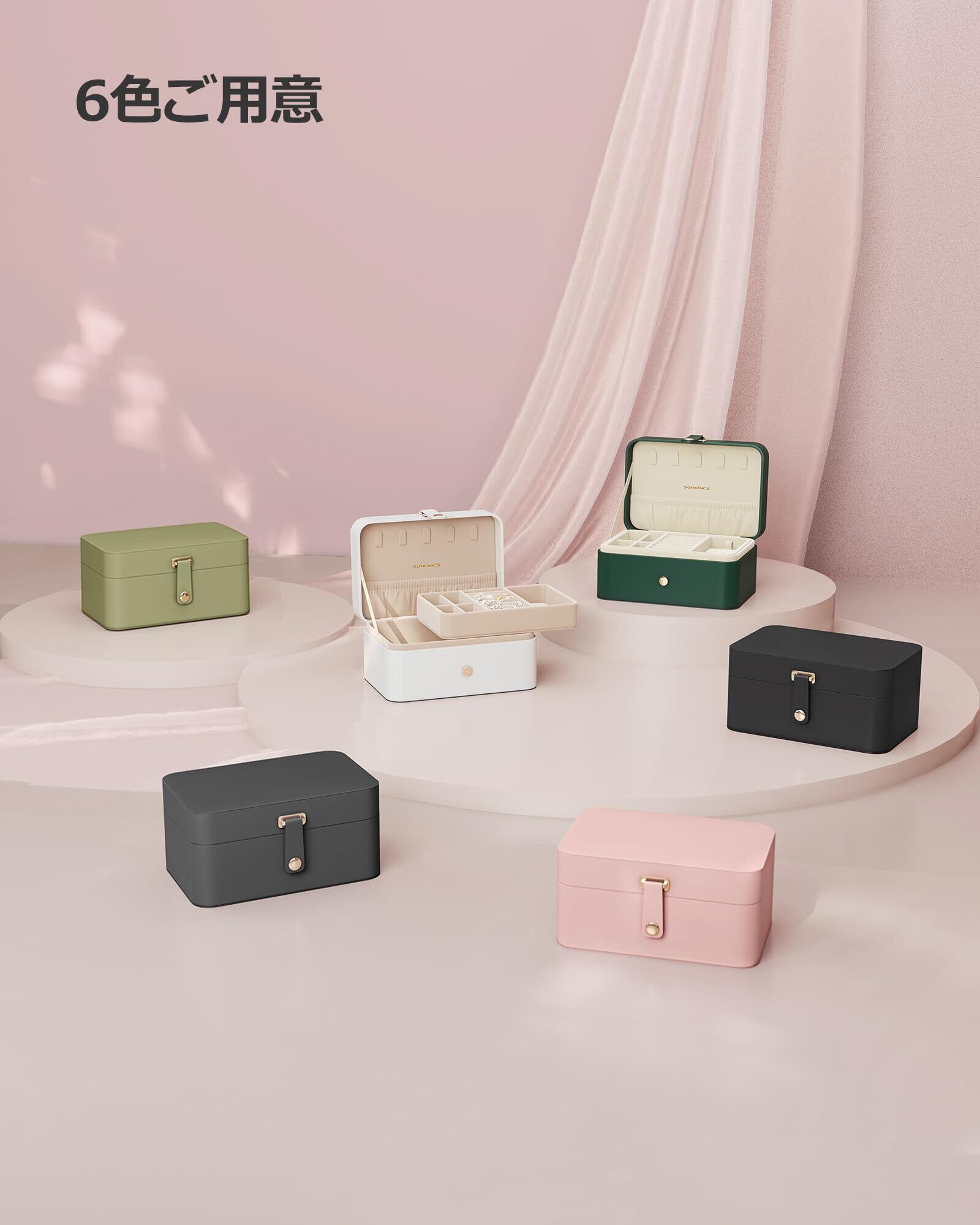【コンパクト&持ち運び便利】サイズ(11×16×8cm)なので、このジュエリーケースはバッグやスーツケースにぴったり収まります。旅行や出張時に数点のジュエリーを持ち歩くのに最適です。さっと収納して出かけましょう!