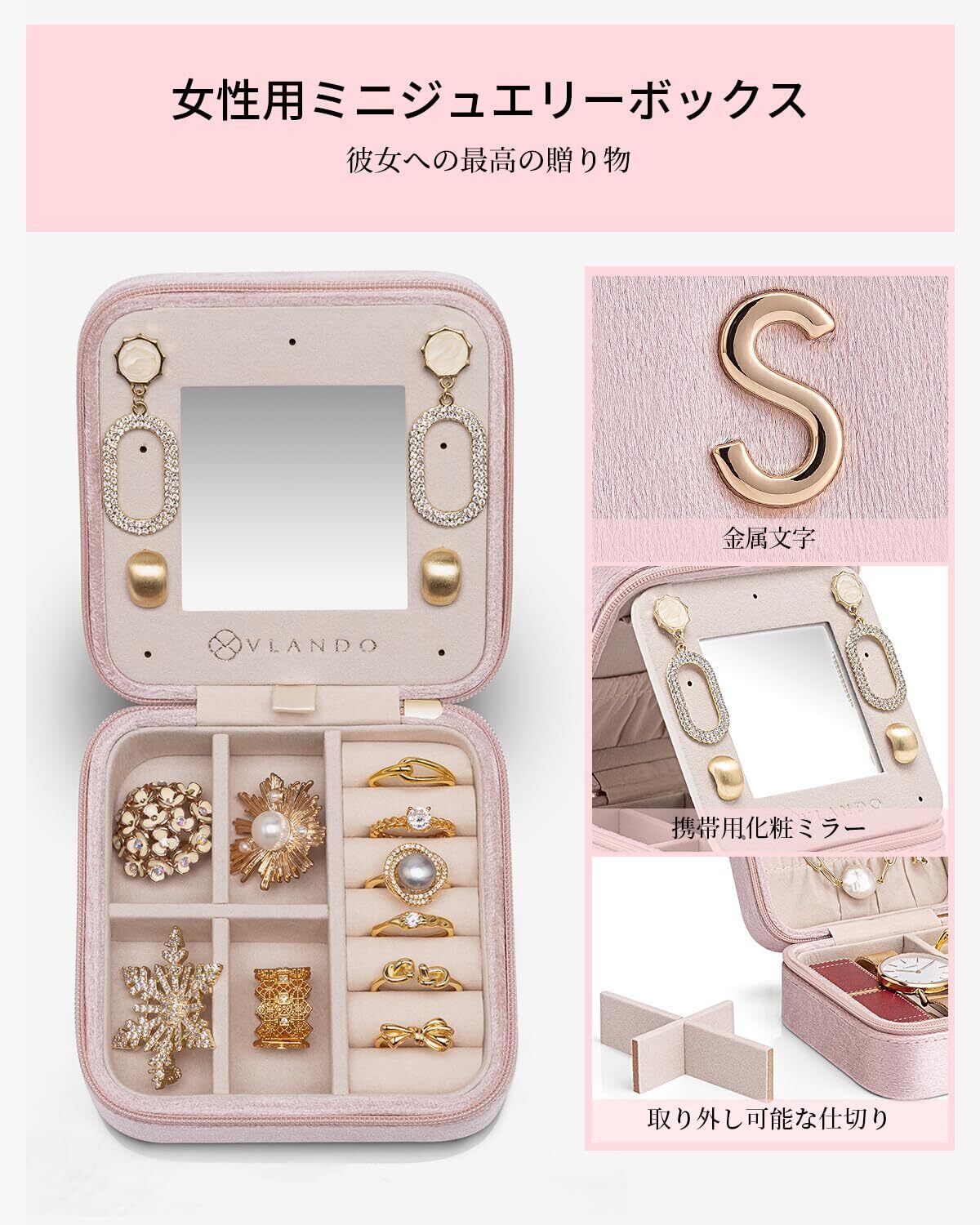 【新着商品】Vlando 誕生日プレゼント 女性 名前入り イニシャル ギフト アクセサリーケース 携帯用 持ち運び 鏡付き ジュエリーボックス トラベル かわいい 母の日 記念日 バレンタイン 結婚式 送別 退職 祝い 贈り物(ピンクS)