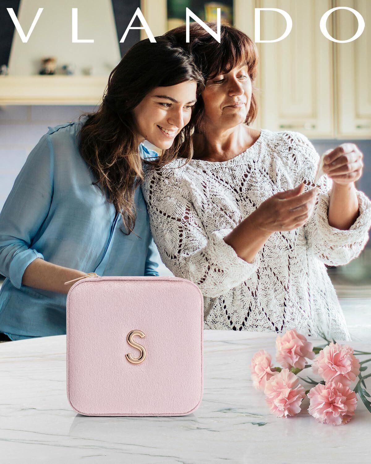 Vlando 誕生日プレゼント 女性 名前入り イニシャル ギフト アクセサリーケース 携帯用 持ち運び 鏡付き ジュエリーボックス トラベル かわいい 母の日 記念日 バレンタイン 結婚式 送別 退職 祝い 贈り物(ピンクS)