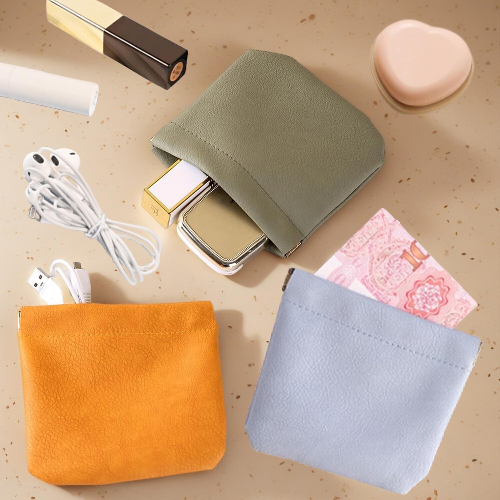 【複数カラー展開】小物入れ ポーチ 小さいはオレンジ、ピンク、ブルー、グリーンの4色から選択可能。ふっくらとした丸みを帯びたシルエットがおしゃれで、様々なスタイルに合わせやすくなっています。自用または贈り物としても、優雅なセンスを際立たせます