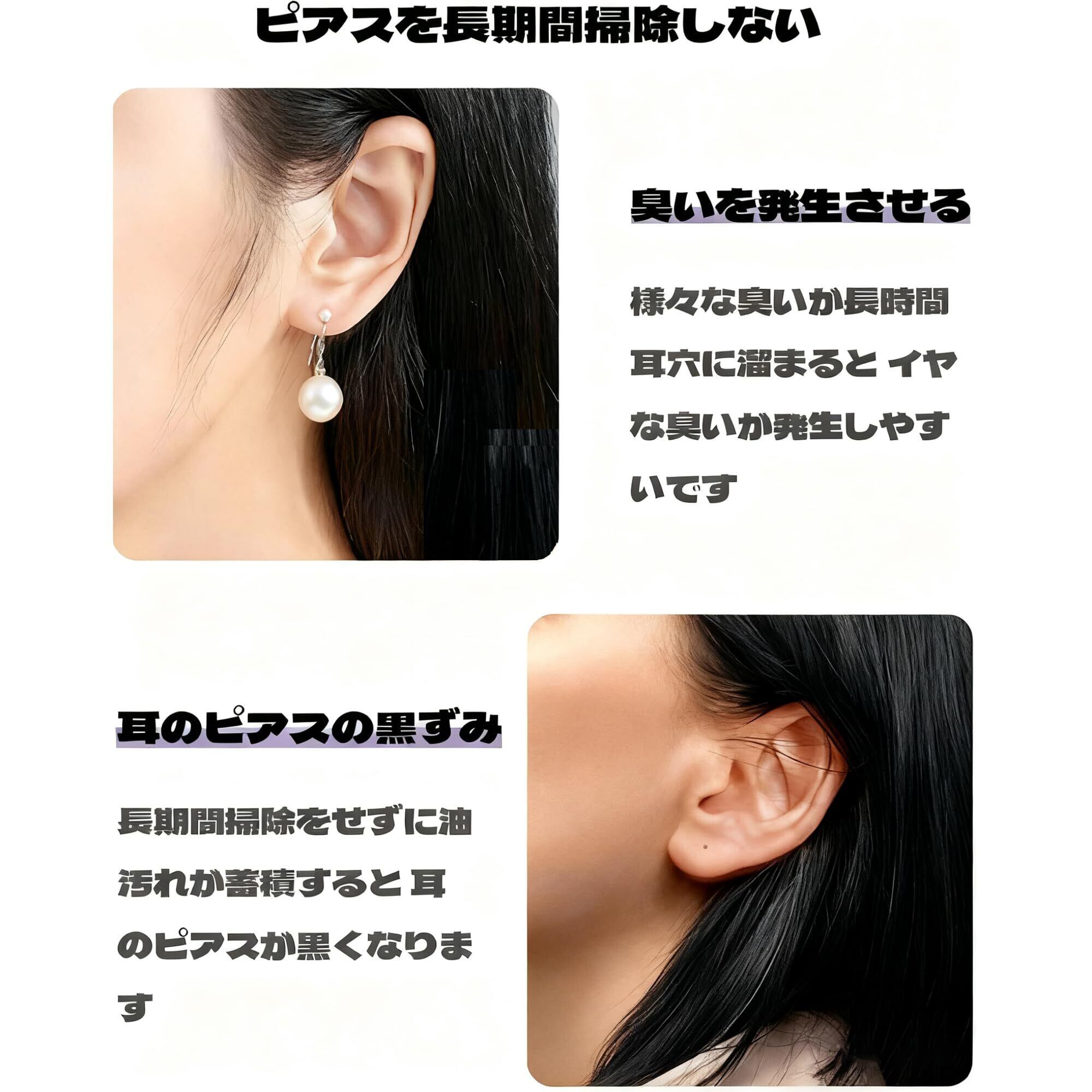 【使いやすい】ピアス穴掃除 使用方法はとても簡単です。ピアス穴掃除 を耳穴に通すだけです。耳ケア用のクリーニング液と一緒に使用すると効果的です。まず、ピアス穴掃除 を液体に2-3秒浸し、その後耳穴に通してゆっくりと引き出すことで、より良い清掃効果が得られます(セットにはクリーニング液は含まれていません)。