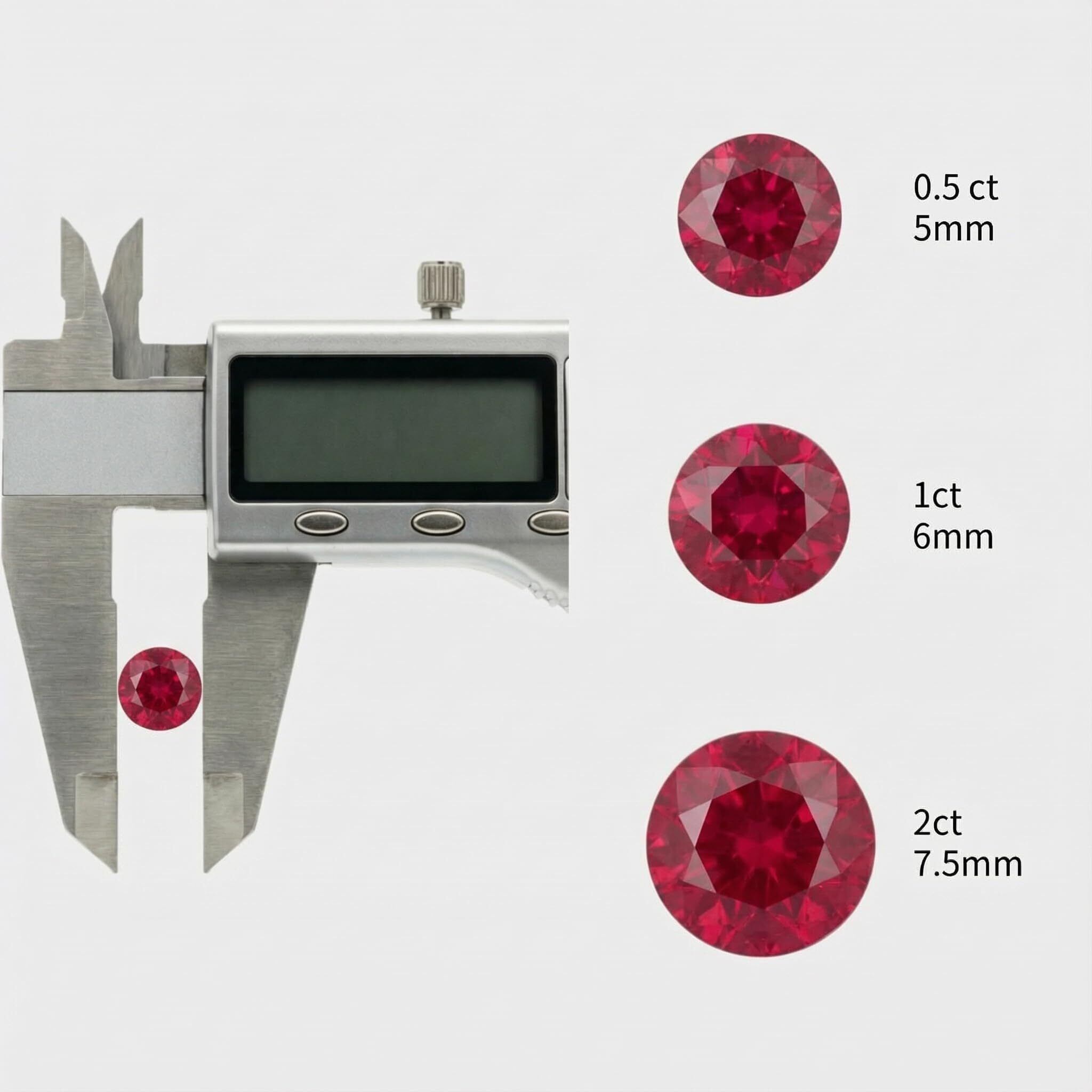 人工ルビー(ラボ育成)ルースストーン 0.5-2.0ct ラウンドブリリアントカット 深紅/ルビーレッド Dグレード VVS1クラリティ AGL証明書付き ジュエリーDIY制作用 ピアス イヤリング 指輪 ネックレス