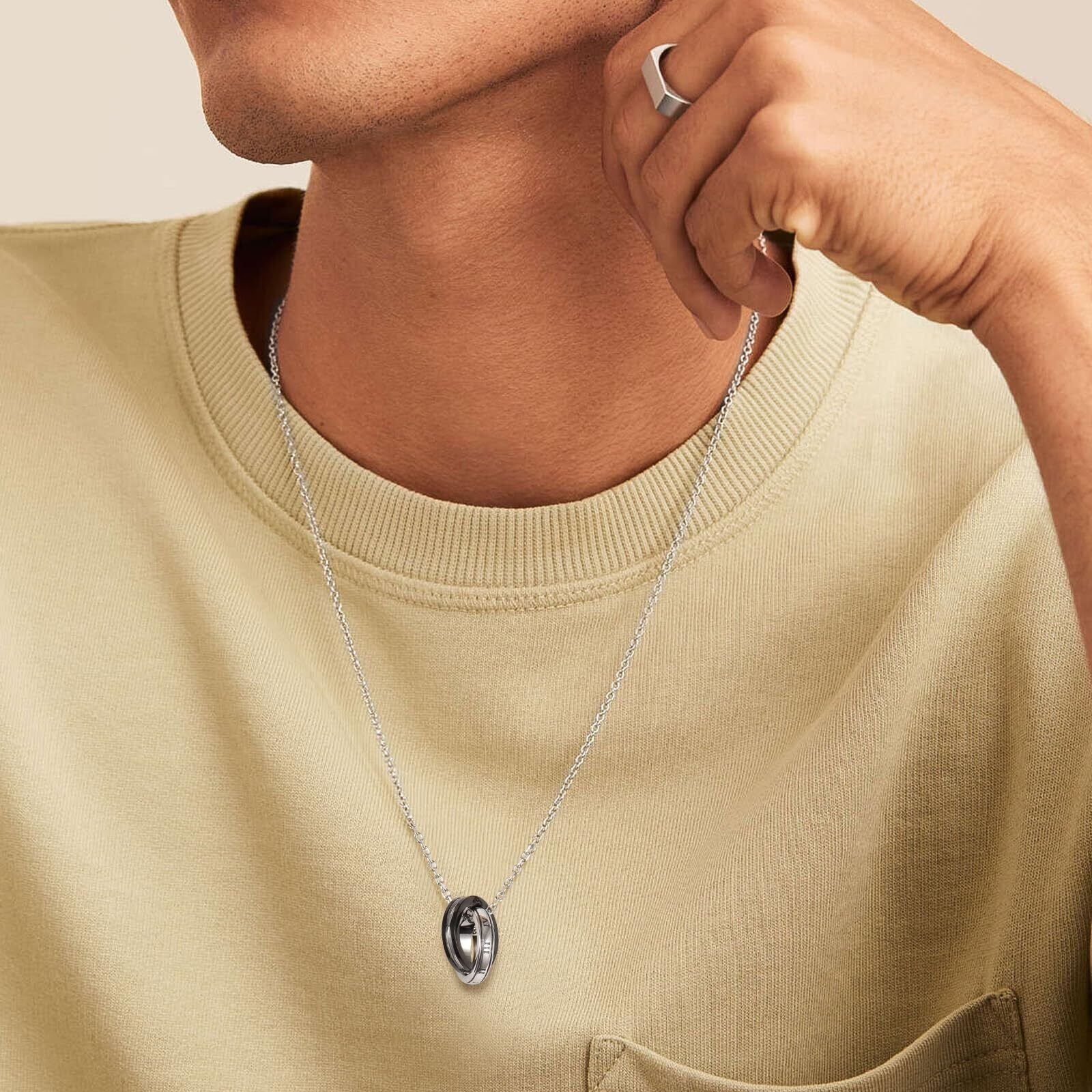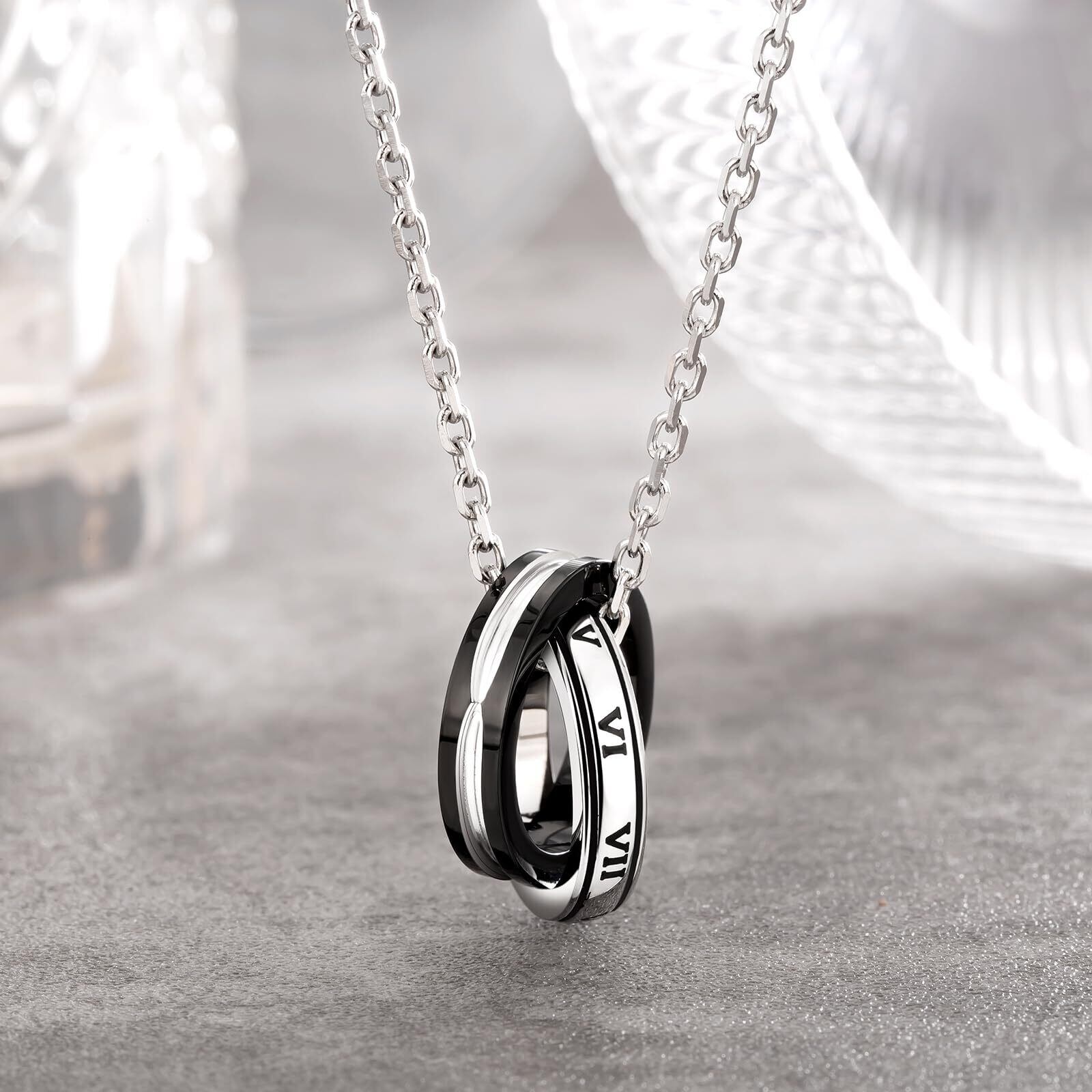 KRKC&CO リングネックレス メンズ 誕生日プレゼント 男性 ペンダントトップ チェーンネックレス ダブルリング サージカル ステンレス ペアネックレス 男女兼用 シルバー ブラック 金属アレルギー対応