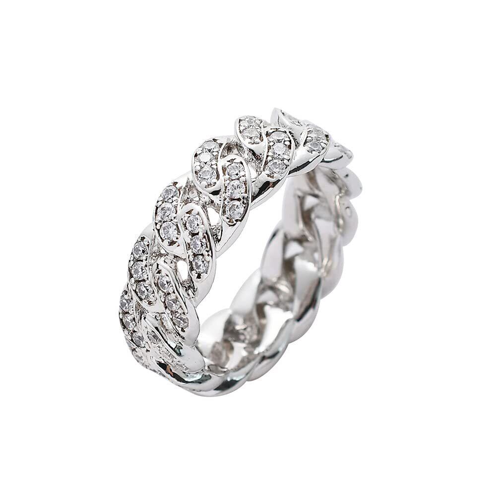 【ヒップホップ風メンズリング】 滑らかな仕上がりでつけ心地も抜群な定番デザインの喜平リングに、光を反射しキラキラと輝くAAAランクのキュービックジルコニアをふんだんに散りばめたラグジュアリーなパヴェリング。