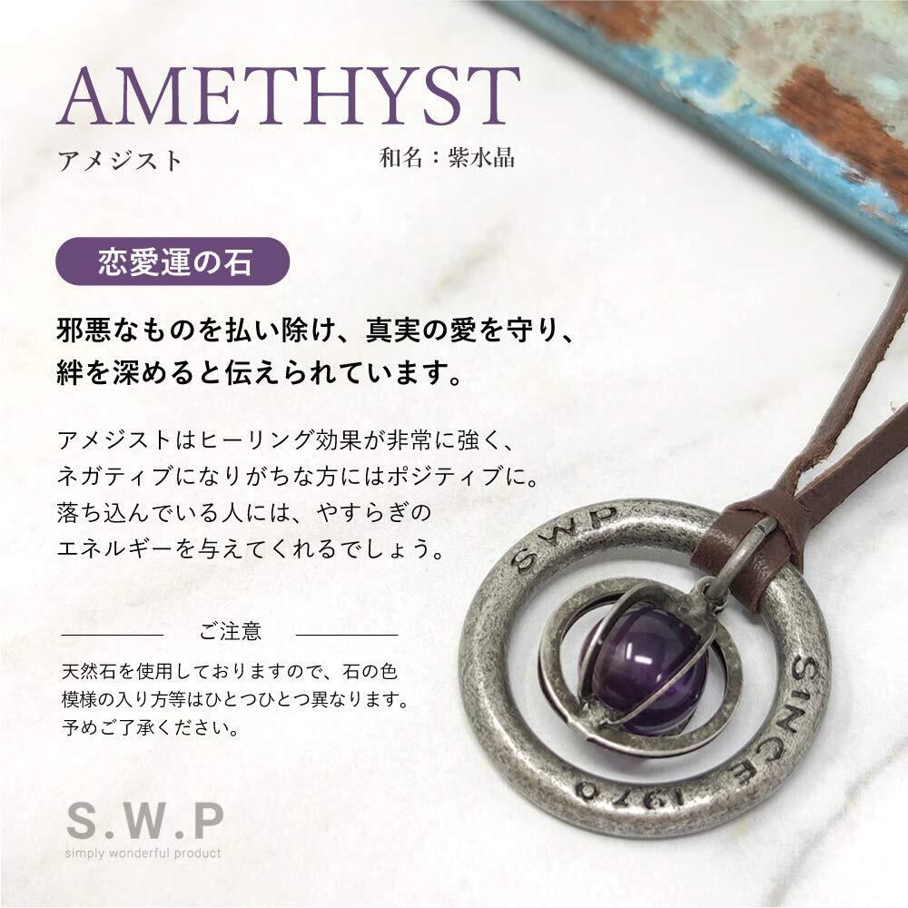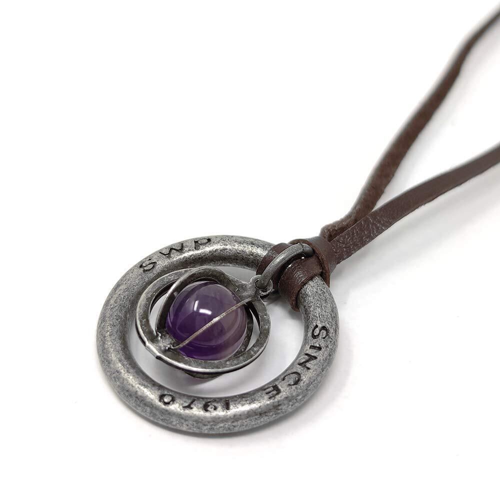 ストーン メンズ ネックレス シンプル リング 天然石 革ひも ロング ネックレス パワーストーン レザー ペンダント (アメジスト) rsbn-001c