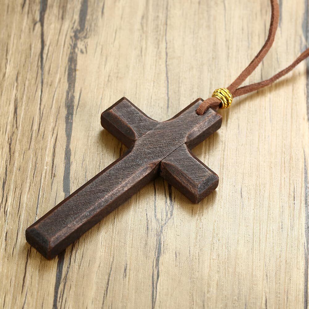 ネックレス メンズ ロング 十字架 ネックレス 人気 クロス 木製 チャーム 黒 ブラウン 立体 彫刻 カジュアル ファッション プレゼント ギフト用 バレンタインデー・クリスマス対応