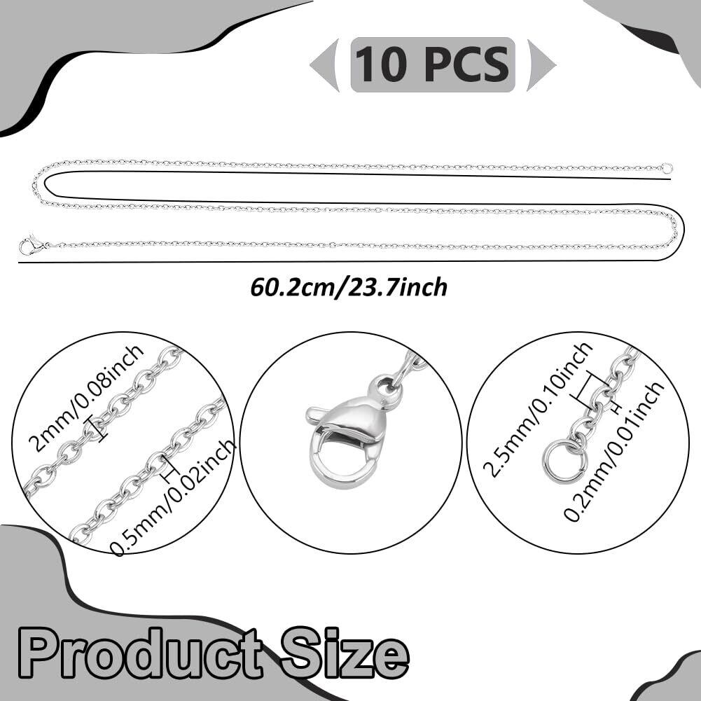 【新春セール】約10本 60cm ネックレス ステンレス製 極細 ケーブルチェーン ネックレスチェーン クラスプ付き 留め金付き シルバーチェーン 金属色 カジュアルスタイル メンズ レディ ストリンギング材料 ジュエリー