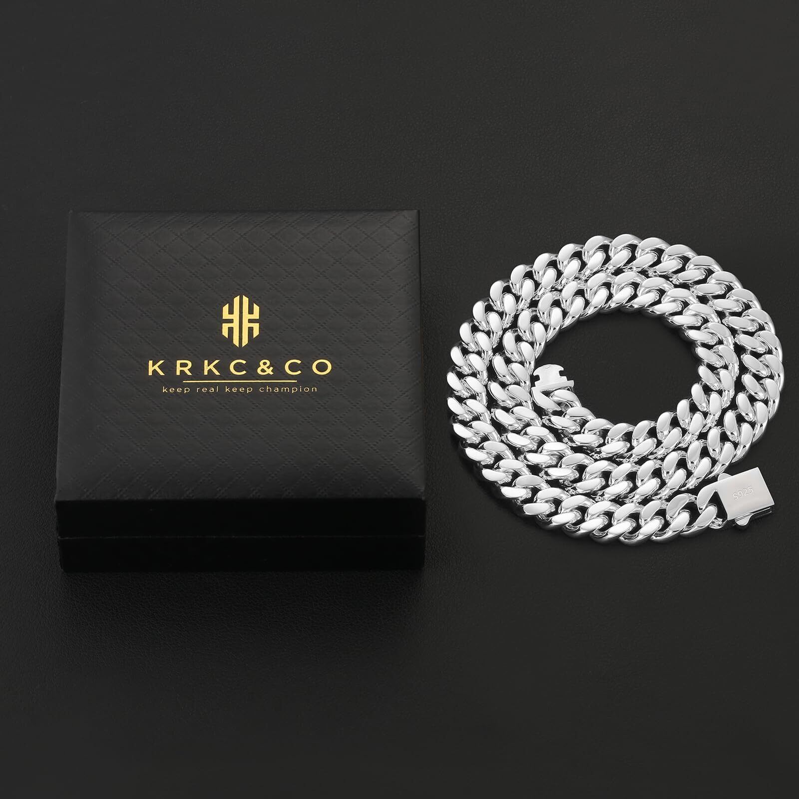 【在庫セール】KRKC&CO 喜平チェーン男女兼用 8/10/12mm マイアミクーバンチェーン 316L ステンレススチールと 925スターリングシルバーメッキ製ネックレス 男性向けヒップホップジュエリー ラッパー B系 ストリートアクセサリー ギフトお祝い