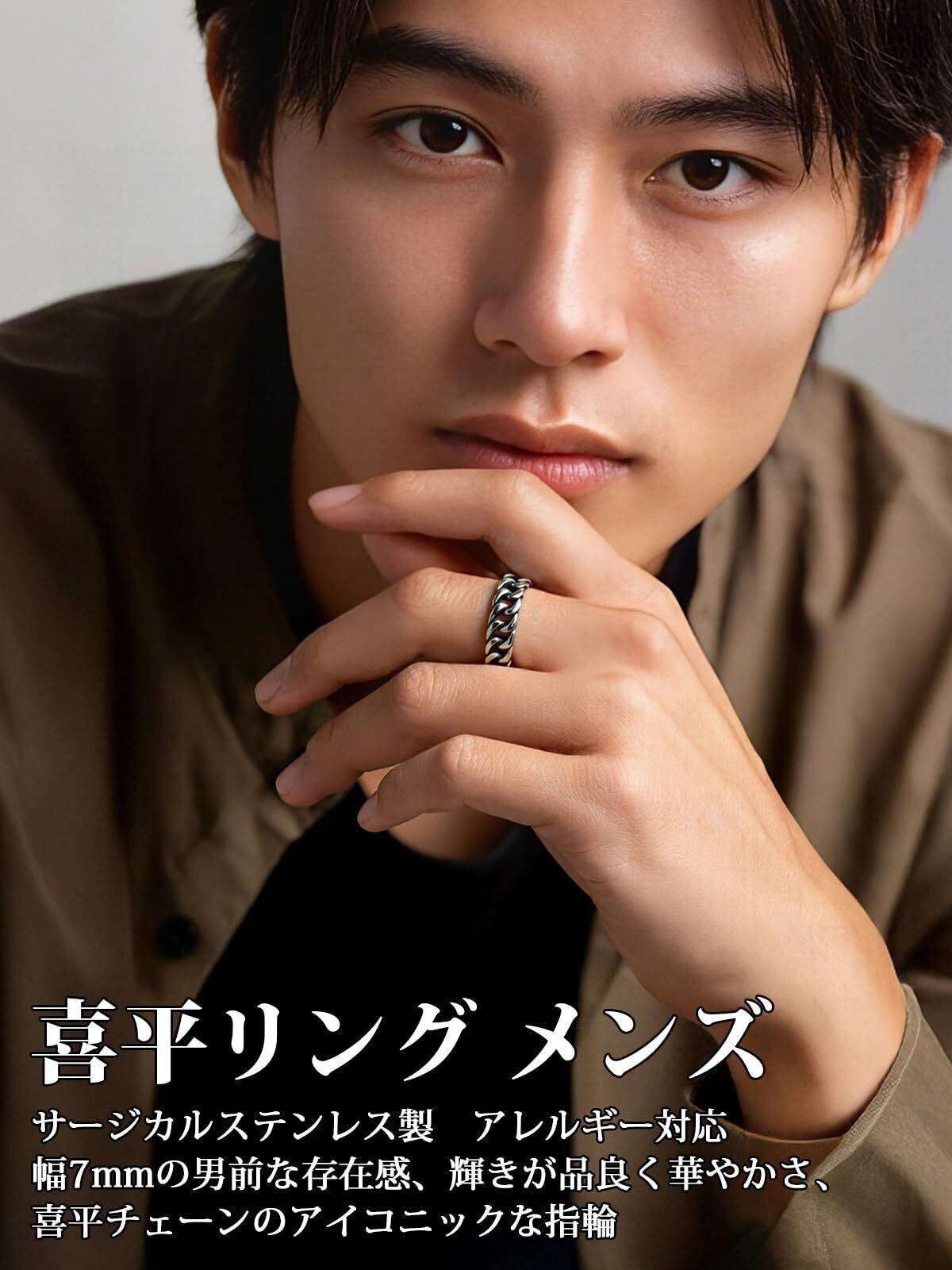 【人気商品】喜平リング メンズ 指輪 サージカルステンレス アレルギー対応 太め 幅7mm シンプル ファッションリング 男女兼用 プレゼント アクセサリー シルバー 20号