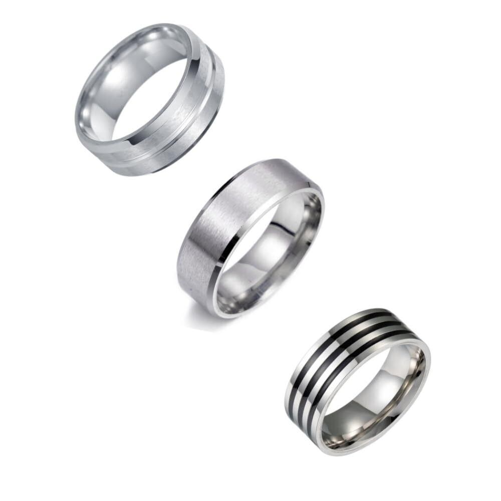 ステンレスのメンズ指輪セット3点です、メンズリングの幅は8ミリ、厚みは2ミリ。