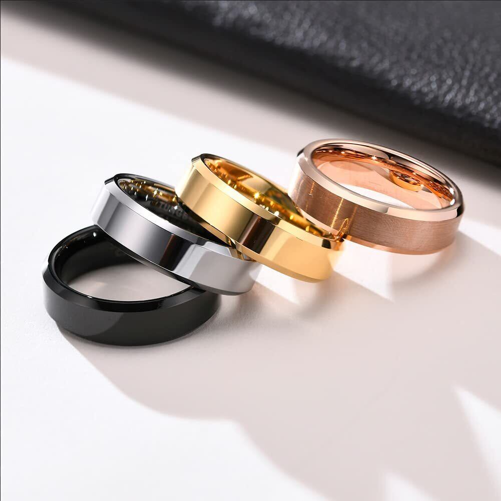 【新着商品】アクセサリー タングステン 指輪 メンズ レディースリング シンプル 金属アレルギー対応 シルバー ブラック ピンクゴールド ブルー 金 銀 黒 青 4色 幅 6mm 男女兼用 マッド質感 超硬 耐久 真空メッキ