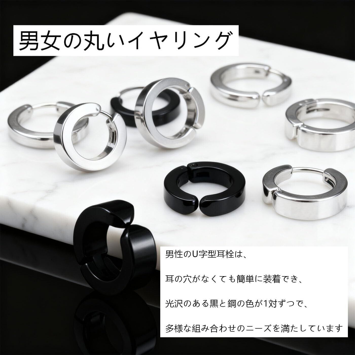 【スタイリッシュなリングデザインで、コーディネートが新鮮】円形、リングをファッション要素とし、U字型の造形はシンプルで独特で、男女共通で、清新で甘いスタイルは各種のアパレルに適しており、簡単にファッション造形を作ることができる