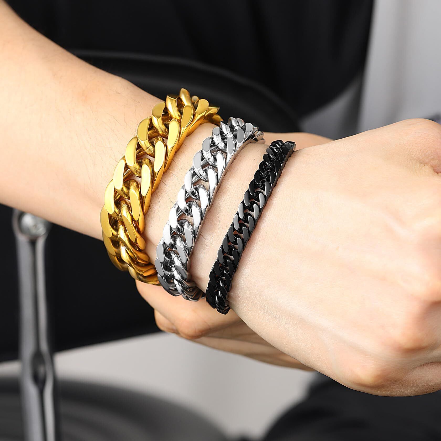 【2022最新】ブレスレット メンズ サージカルステンレス 喜平チェーン 金属アレルギー対応 つけっぱなし 中折れ式留め