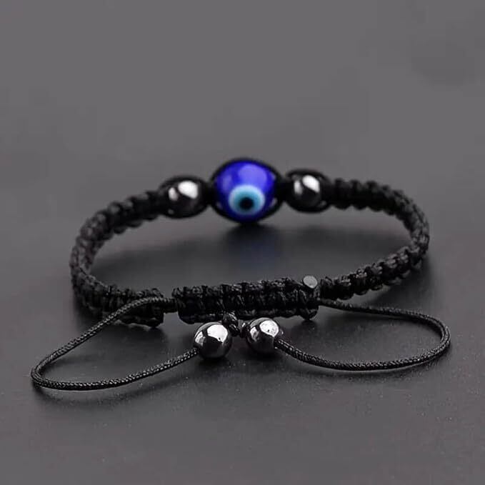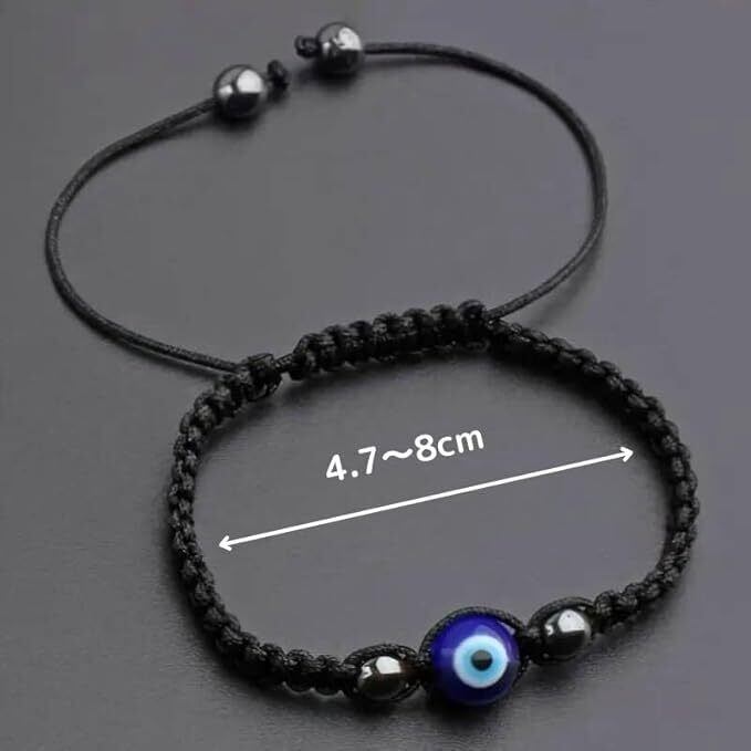 ナザルボンジュウ ブレスレット アンクレット 青い目玉のお守りNazar Boncugトルコ雑貨 トルコ土産 v-45 ・手編みロープのハンドメイド・小さなナザルボンジュウのブレスレット ・他人の悪いエネルギー(邪眼)から守り、幸運をもたらすとされるトルコやイランに伝わる伝統的なお守りです ・調節可能な紐なので、ぴったりフィットします。お守りとしてプレゼントにもおすすめ ーDetailsー サイズ:ブレスレット部分直径4.7~8センチ 素材:ガラスビーズ、ナイロン紐 内容量:1個 ■目玉の大きさや形に多少のバラツキや位置の違いがあります。ハンドメイドならではの個性としております。