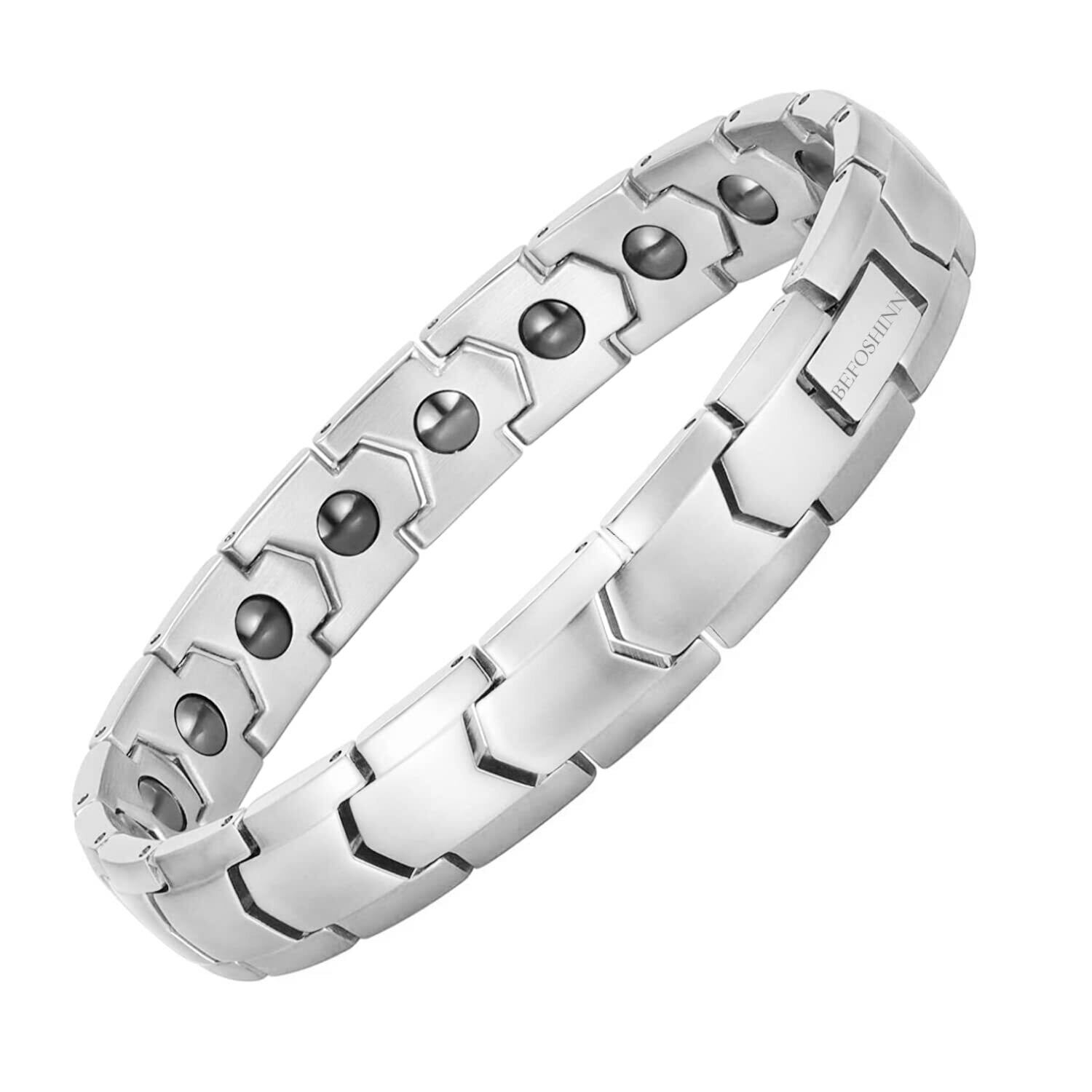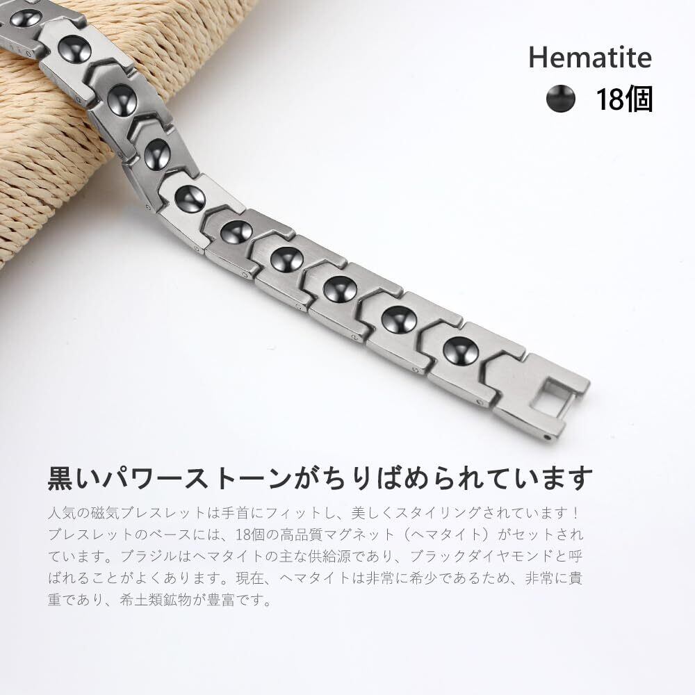 【肌にやさしい】:ユニセックスの磁気ブレスレットは、肌にやさしく、アレルギーを起こしにくいステンレス鋼で作られています。表面は、耐食性を高め、毎日の発汗や入浴中に色あせや錆びない黒い電気メッキプロセスを採用しています。長時間の着用に最適です。