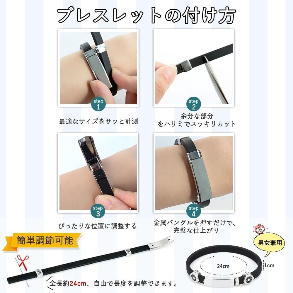 静電気 除去ブレスレット 静電気除去グッズ 静電気防止 静電気対策 チタン ブレス 磁気 ゲルマニウム バングル シリコン スポーツ シリコンブレスレットバングル サイズ調整可能 24cm 男女兼用 防水 秋冬乾燥季節対応