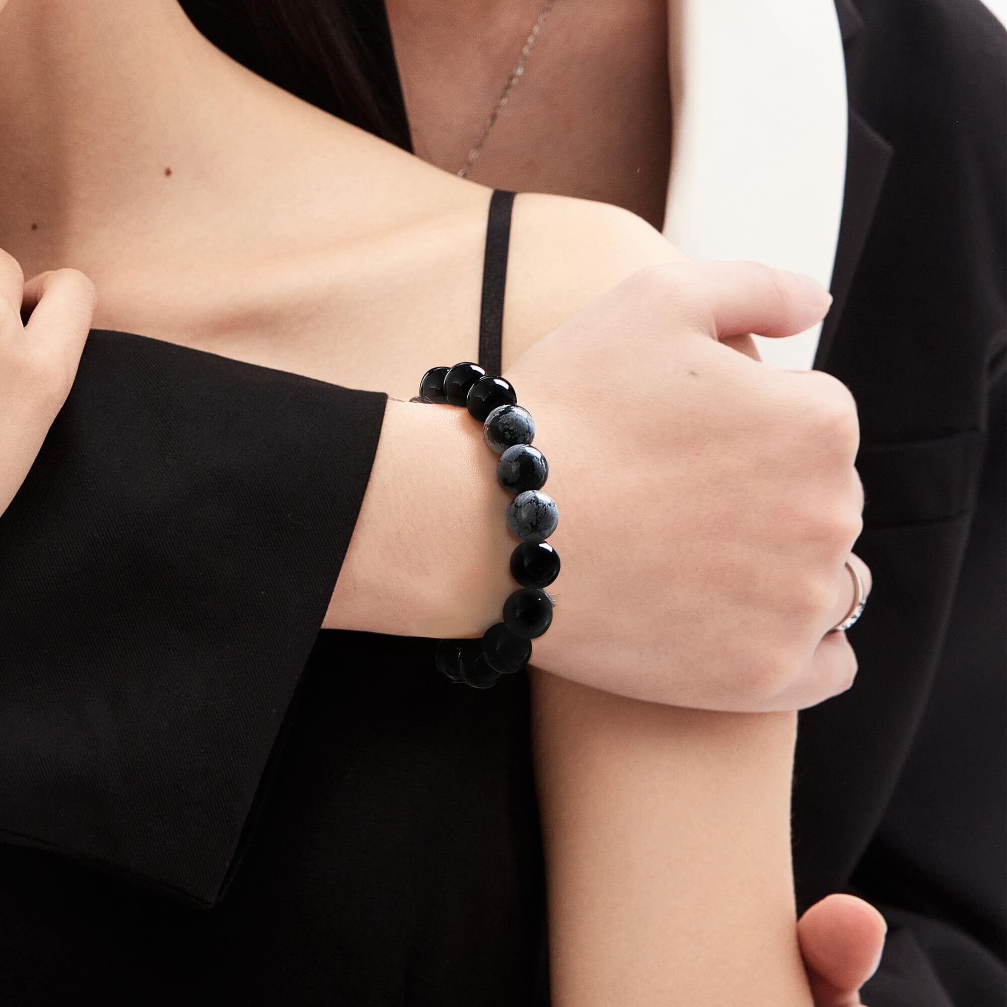 【商品仕様】手首周りサイズ:16cm(サイズ調整できる),直径:5.0㎝、サイズ:黒曜石1cm*16個、黒曜雪花石1cm*2個、。素材:黒曜石/黒曜雪花石,重さ:約25.49g,※サイズは多少誤差がある場合がございますので予めご了承ください。