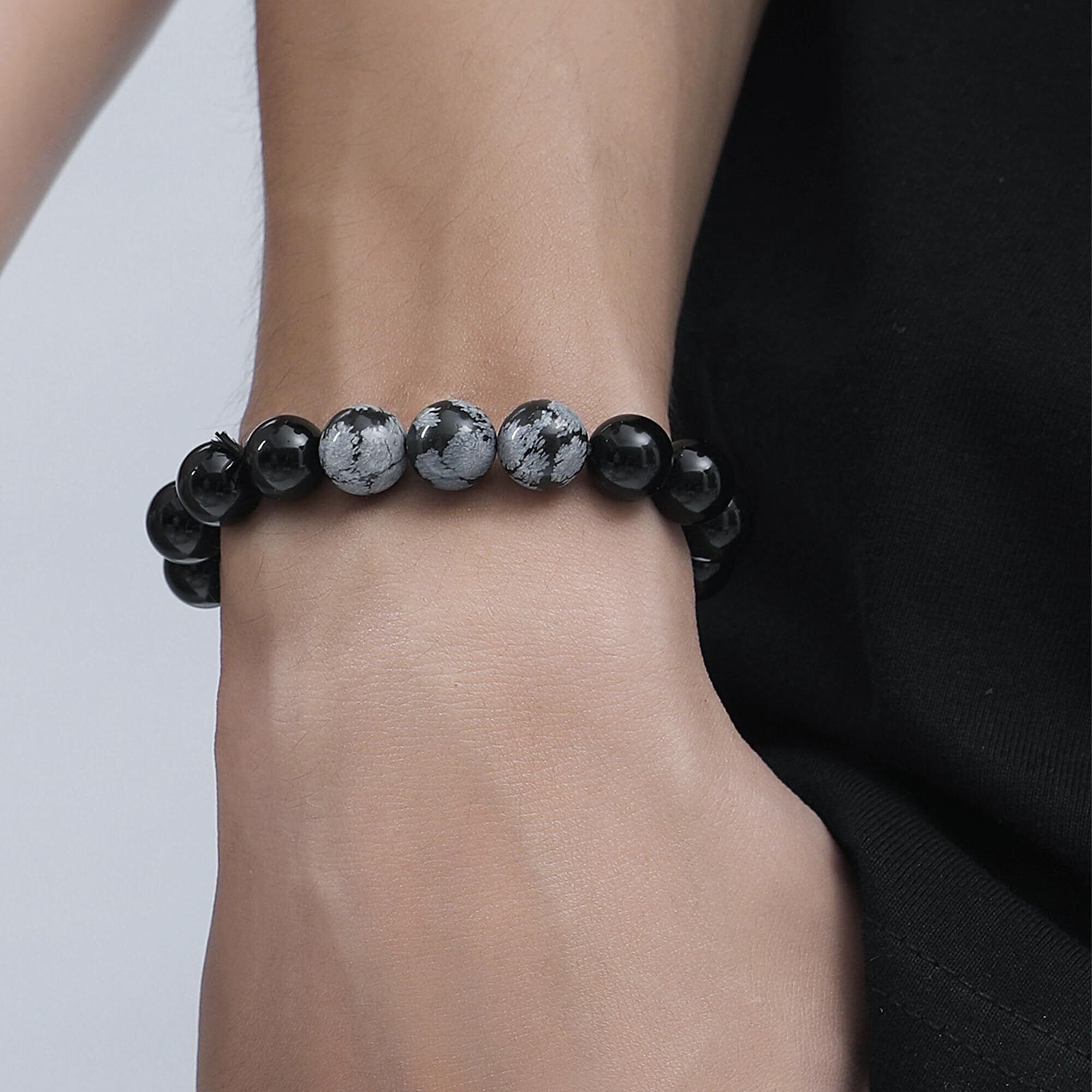 【2022最新】メンズ ブレスレット 人気 パワーストーン 黒曜石・火山石・黒玛瑙 大玉デザイン クールエネルギー バレンタインプレゼント