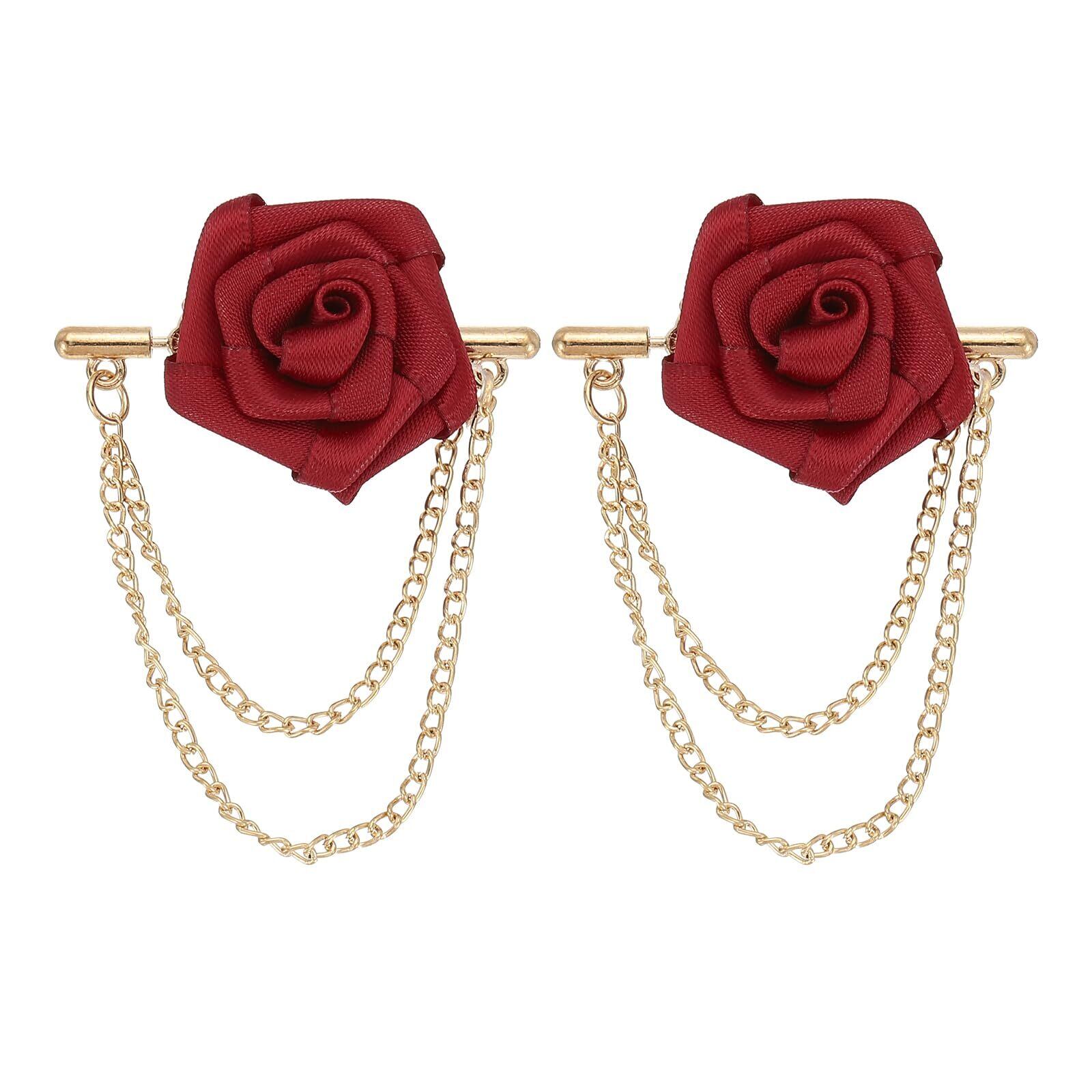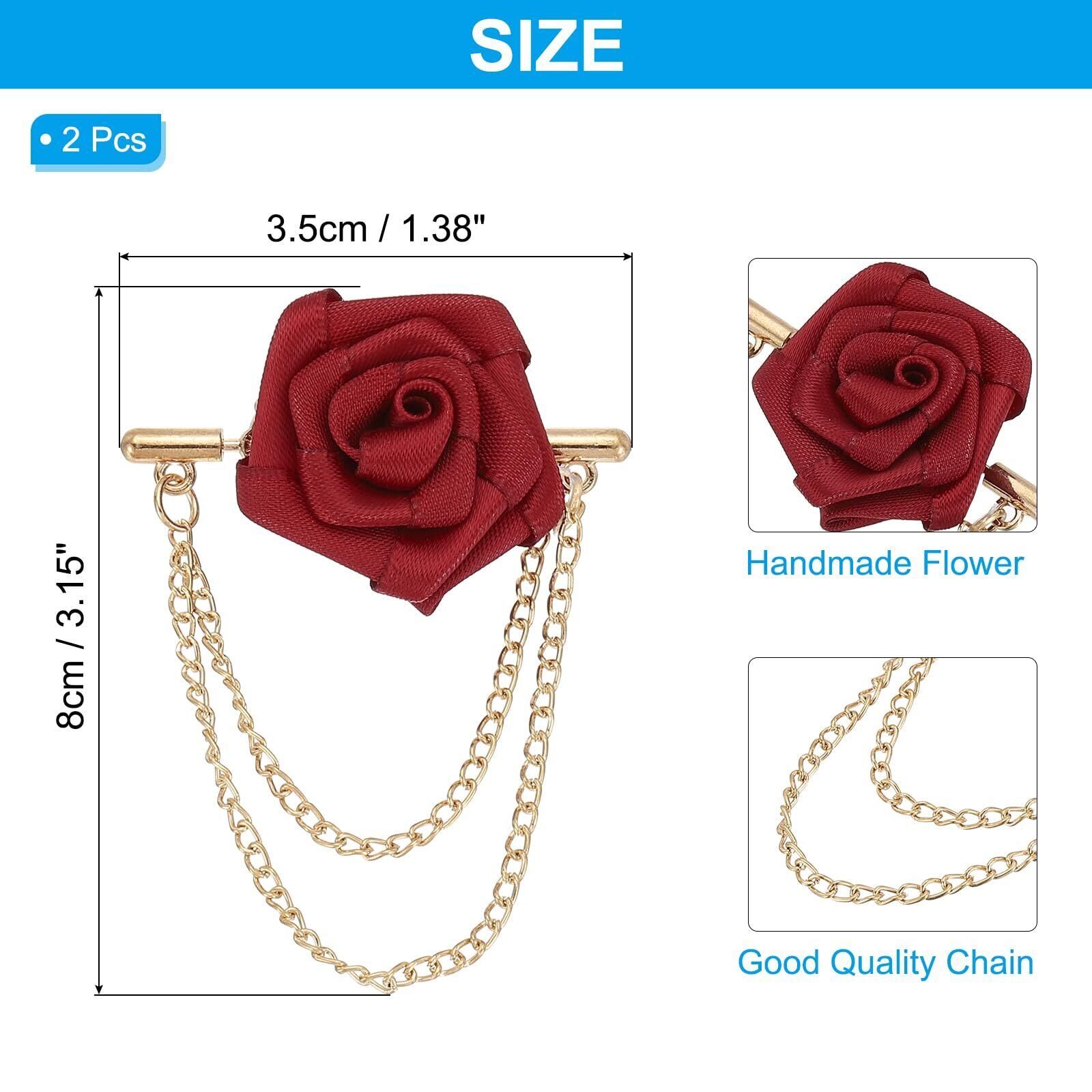 PATIKIL ブローチ スーツ ラペ ルピン チェーン付き コサージュ メンズ 服アクセサリー 結婚式 卒業式 記念日 演奏会 レッド 2個