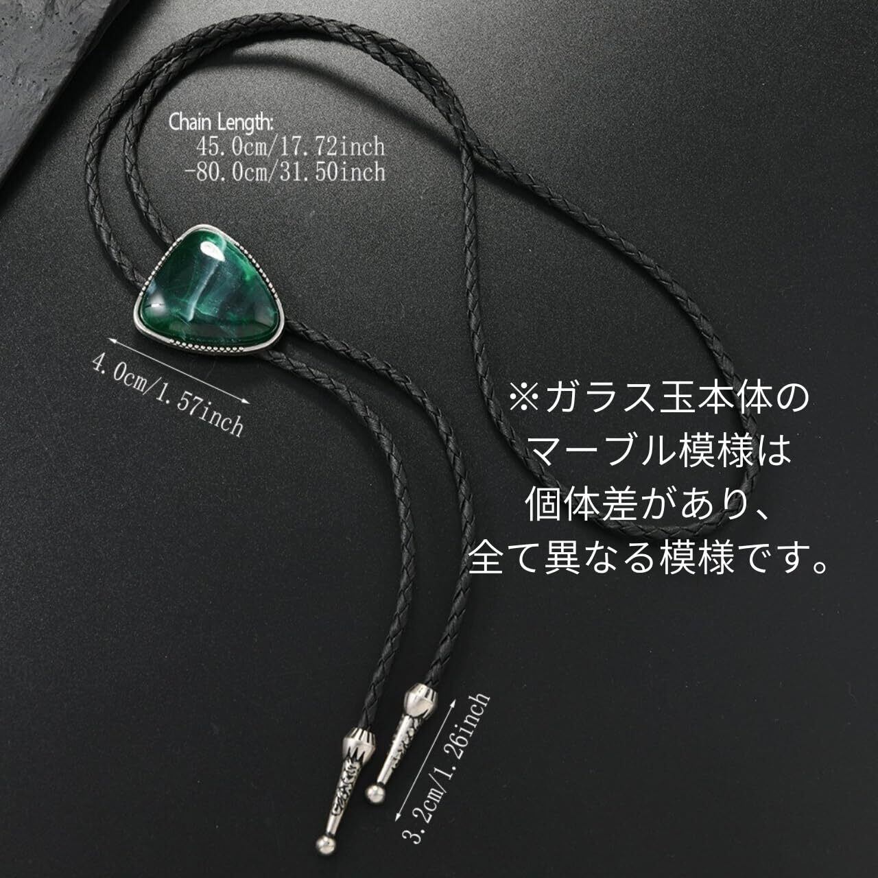 【サイズ】ペンダント部:3.5cm-4cm(重さ約30g)、紐長さ:約100cm。全4色(ブラック、ブルー、グリーン、ブラウン)から、お好みのカラーをお選びください。
