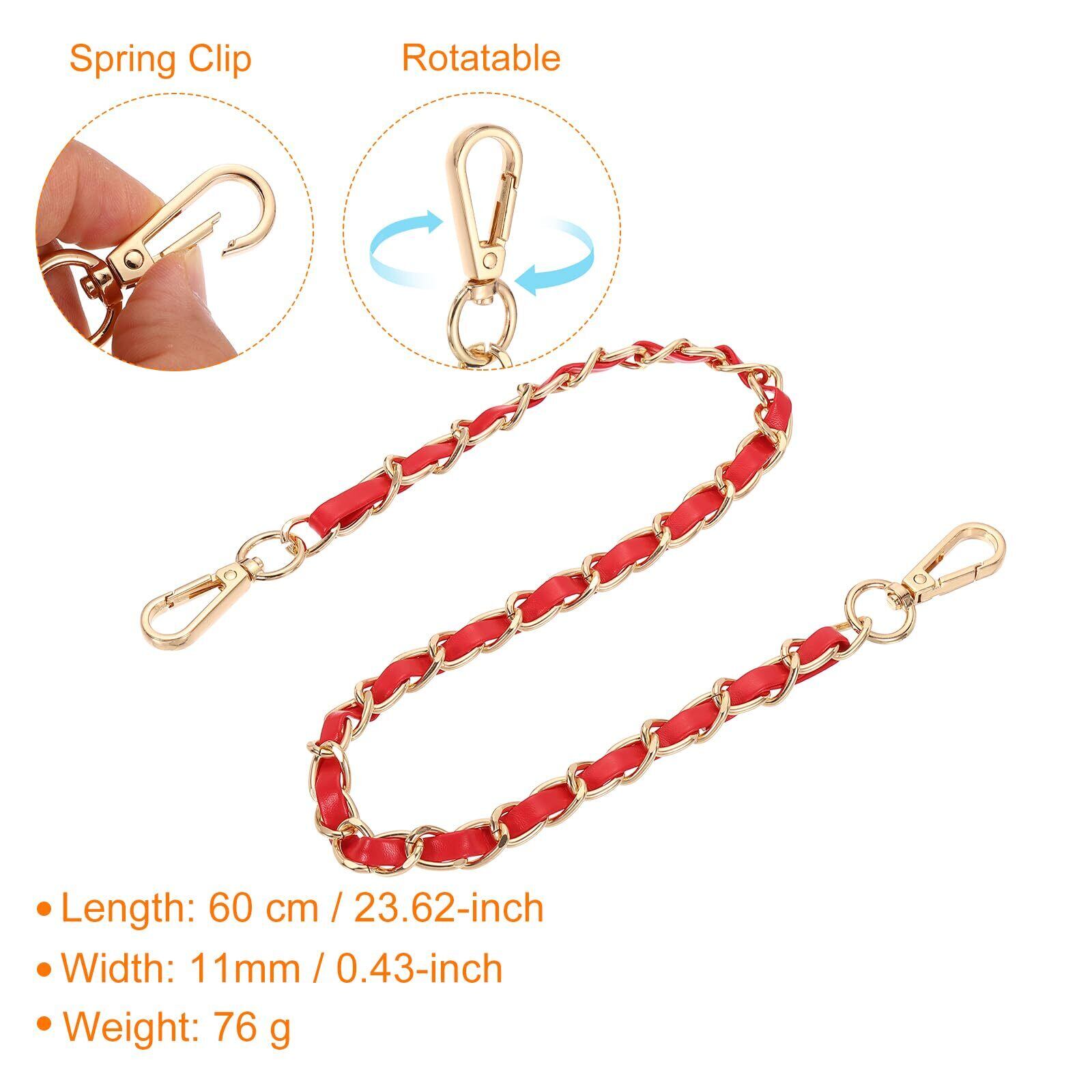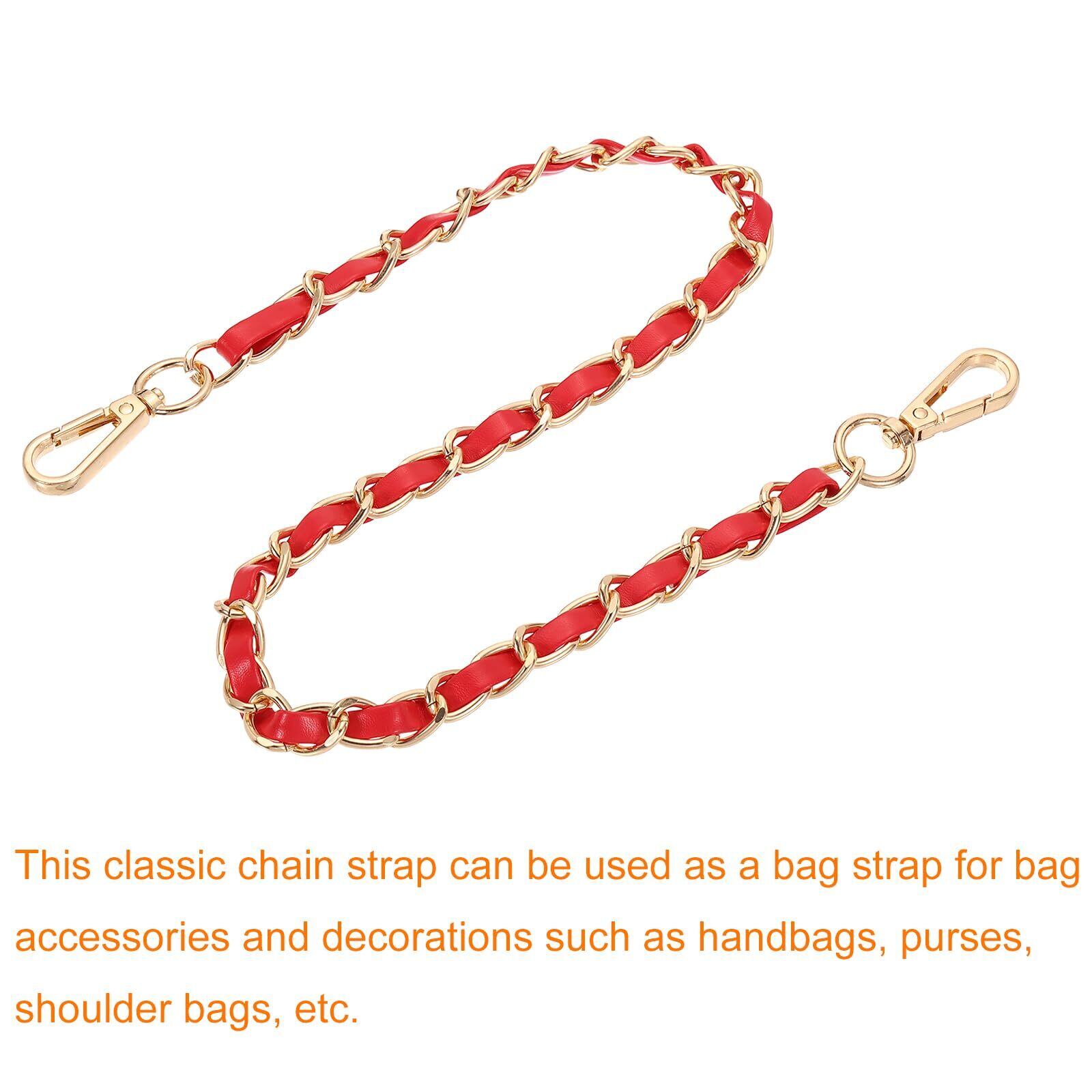 uxcell 財布用チェーンストラップ 24インチ レザー鉄製平チェーン ハンドバッグ用チェーン バックル付きショルダー&クロスボディバッグ用ストラップ (赤ストラップ+金チェーン)