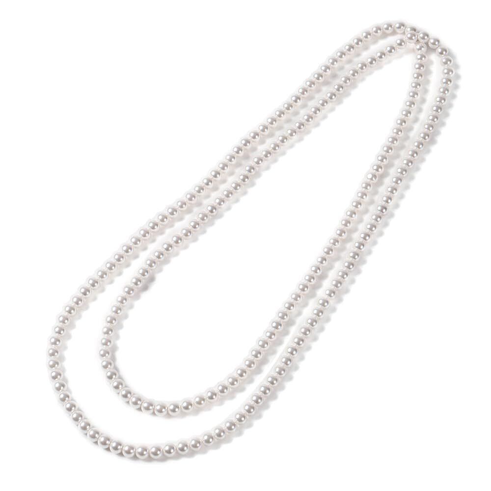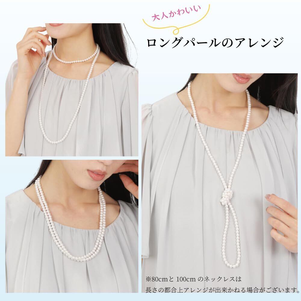 【さまざまなシーンで活躍!】 ハレの日の結婚式や入学式などのおめでたいフォーマルシーン 、パーティーやイベントなどの華やかな装いの場に、オフィスや普段使いのカジュアルシーンまでさまざまな場でお使いいただけるロングパールネックレスです。【軽くて使いやすいパール珠を採用】ロングパールなのに重くなり過ぎない6mm珠を採用!シングルの80cm~100cm や2連&結びアレンジOKの120cm~140cmまで4種類のサイズをご用意しました。