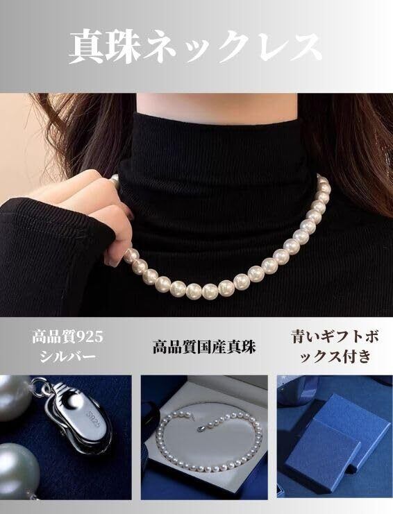 【特価セール】日本製 パール ネックレス ホワイト グラデーション セット シルバー925 パールネックレス 高級国産 真珠 冠婚葬祭用 8mm